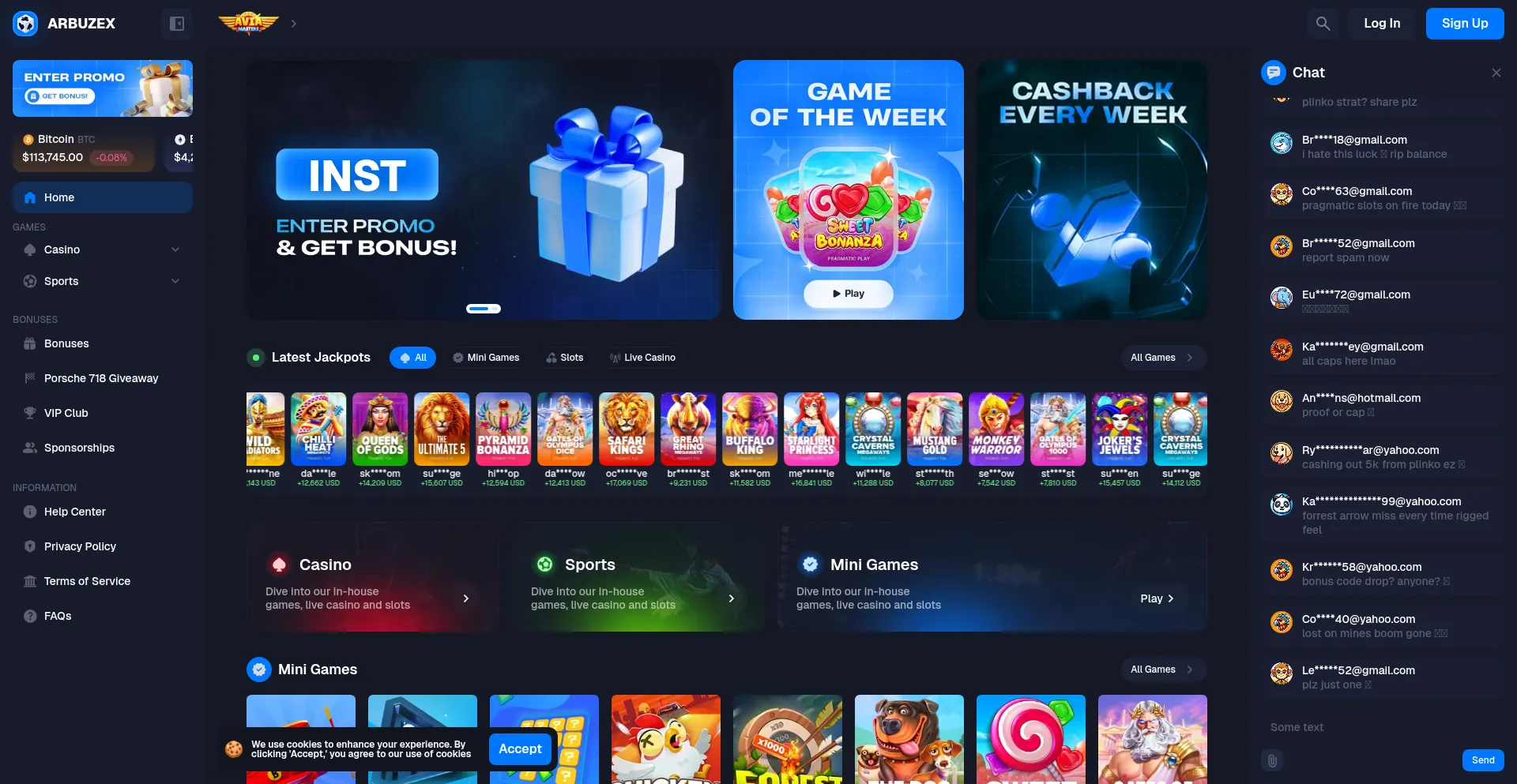 Arbuzex.com claims to be the “#1 decentralized crypto gaming platform,” with fake endorsements from celebrities like Elon Musk or Bill Gates. It tempts users with signup bonuses of up to $10,000, but withdrawals are blocked unless more deposits are made — a disguised withdrawal fee.