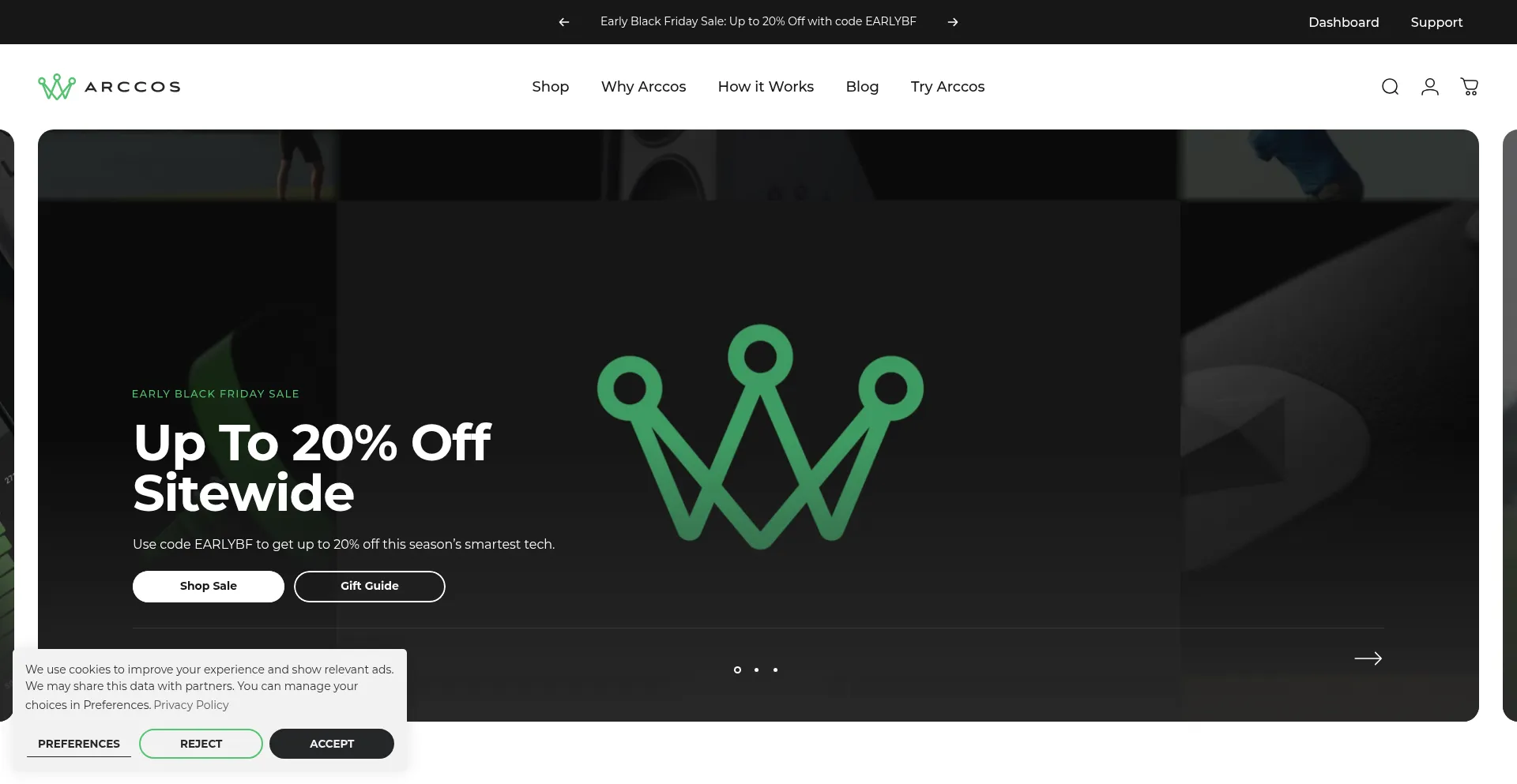 The website implements cookie consent mechanisms in compliance with privacy regulations such as GDPR or CCPA. This demonstrates that arccosgolf.com adheres to data protection standards and provides users with control over personal data collection practices.
