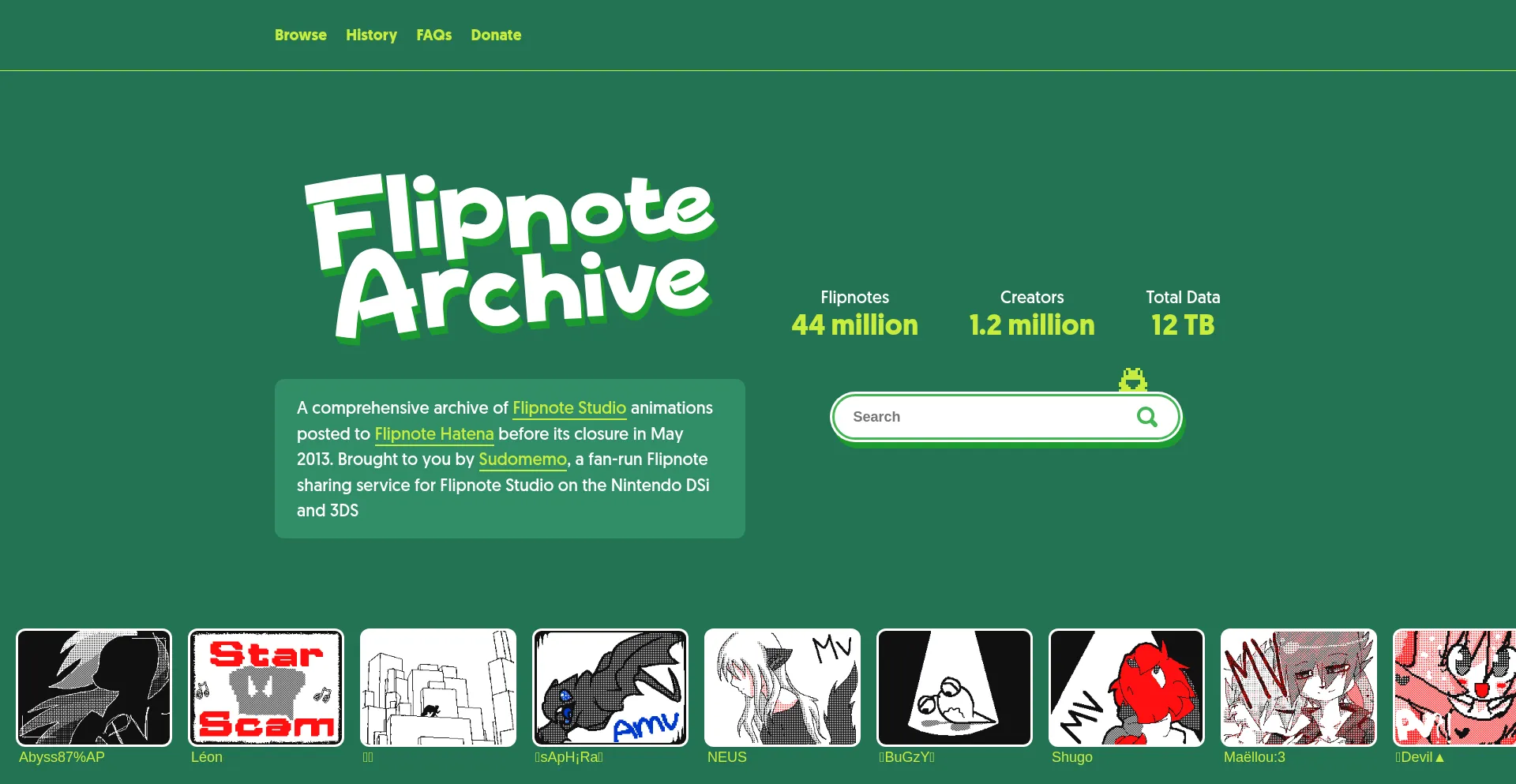 A full archive of Flipnote animations posted to Flipnote Hatena before it closed. Brought to you by Sudomemo.