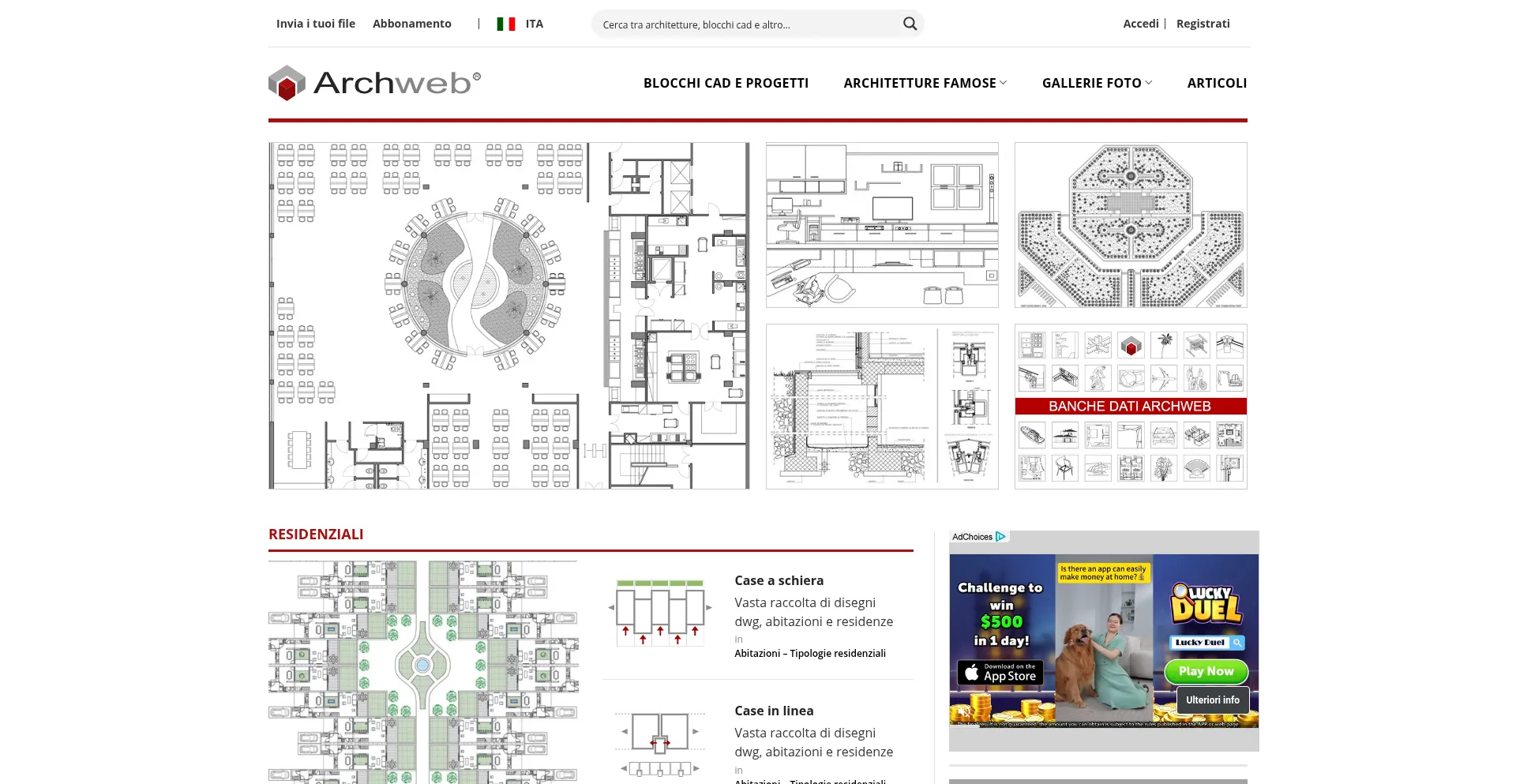 Home page Archweb.com. Da questa pagina si accede ai tantissimi contenuti del sito. L'architettura, disegni dwg, dettagli, foto, articoli...