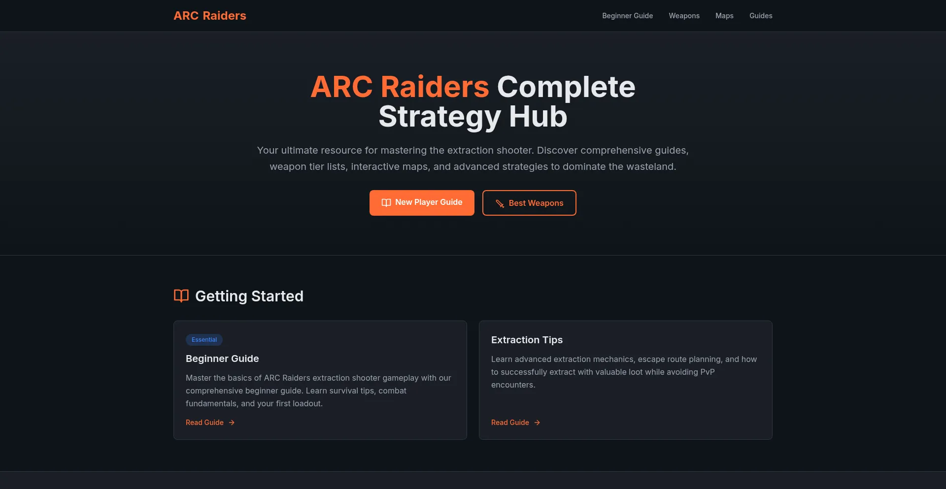 Your ultimate ARC Raiders resource hub. Discover comprehensive guides, weapon tier lists, interactive maps, extraction tips, and the latest news for the 2025 extraction shooter.