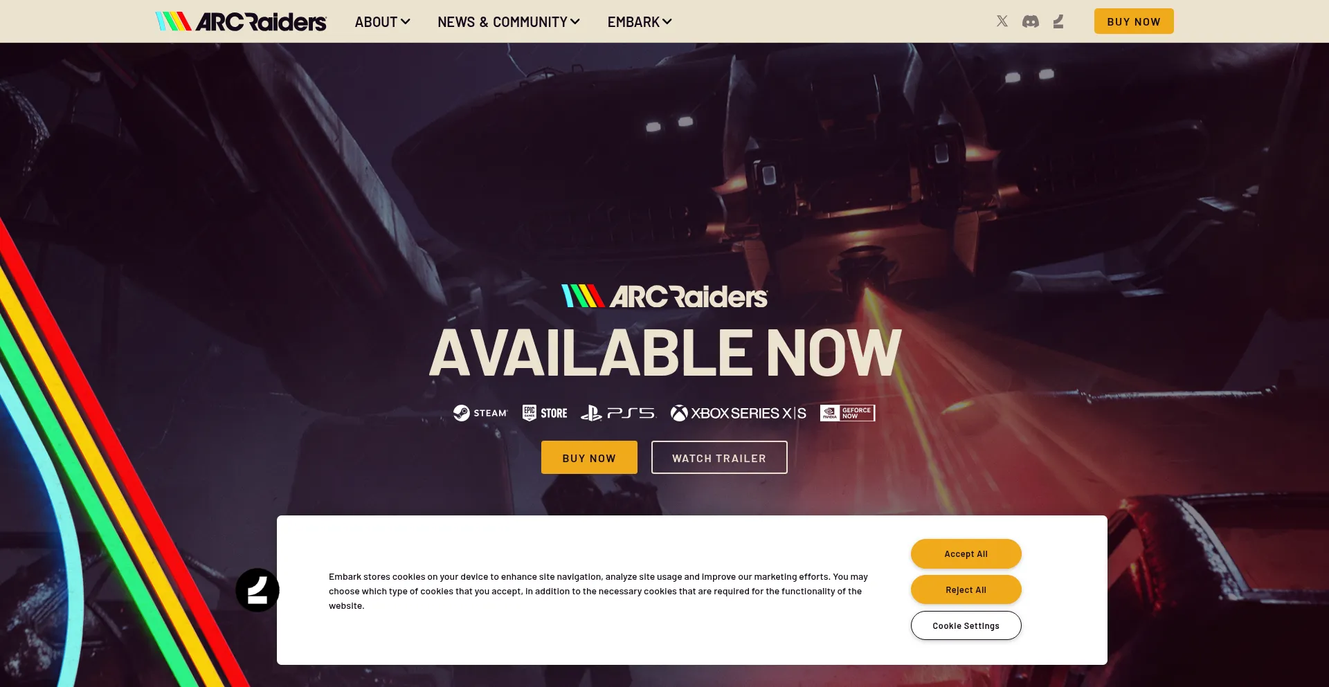The website implements cookie consent mechanisms in compliance with privacy regulations such as GDPR or CCPA. This demonstrates that arcraiders.com adheres to data protection standards and provides users with control over personal data collection practices.