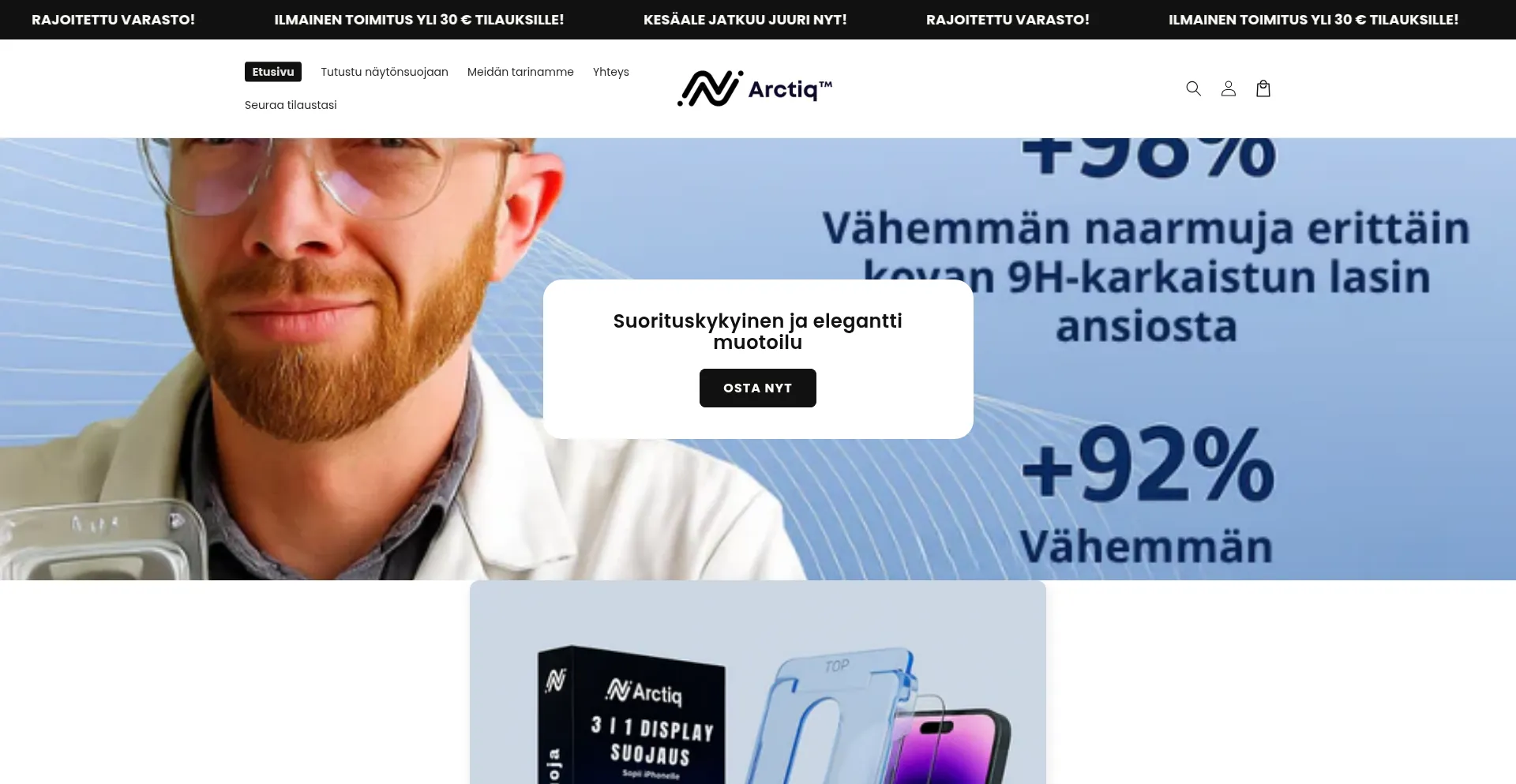 Analysis indicates that arctiq.fi operates as an e-commerce platform facilitating online transactions for goods or services. The website implements shopping cart functionality, payment processing systems, and product catalog features typical of commercial retail operations.