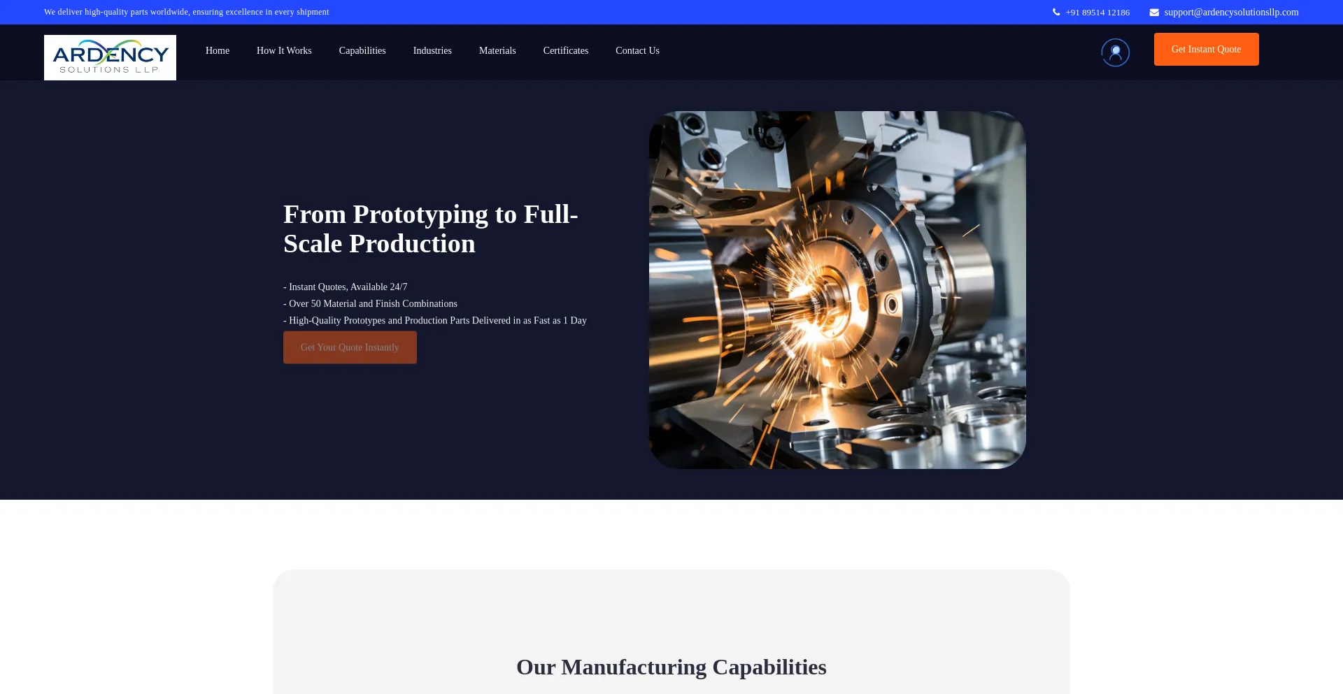 Ardency Solutions LLP offers high-quality custom parts production, including CNC machining, 3D printing, sheet metal fabrication, and injection molding with rapid turnaround times.