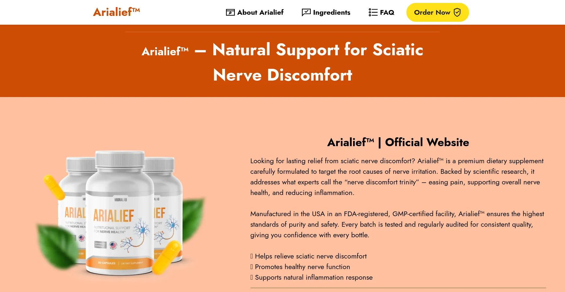 Order Arialief™ from the official website. Natural formula for sciatic nerve relief that helps reduce tingling, burning, and numbness effectively.