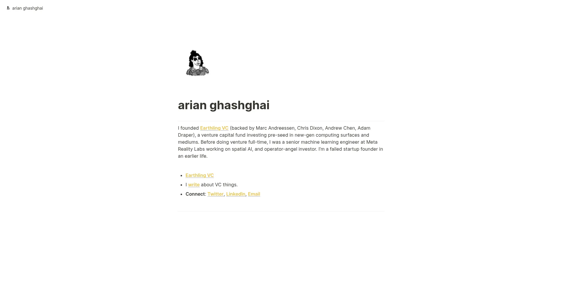 vcstuff.substack.com assets-v2.super.so arian.vc earthling.vc twitter.com images.spr.so www.linkedin.com