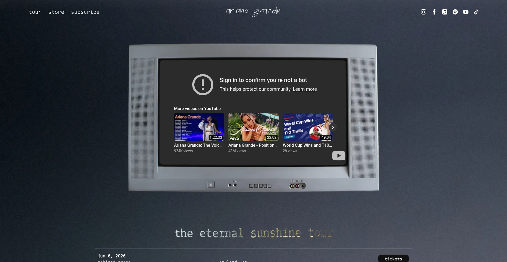 The arianagrande.com website implements data collection forms that may request personal information including names, email addresses, phone numbers, or other sensitive details. Users should verify the legitimacy of it and review privacy policies before submitting personal data.