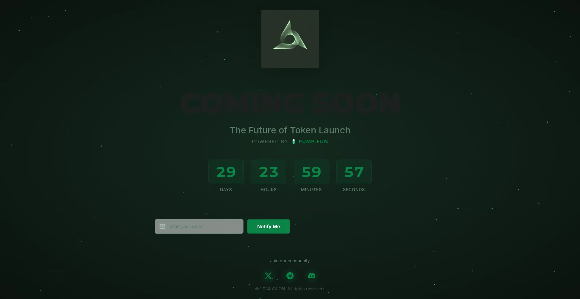 ARION token launch is coming soon. Powered by pump.fun on Solana. Join the waitlist to get notified when we launch.