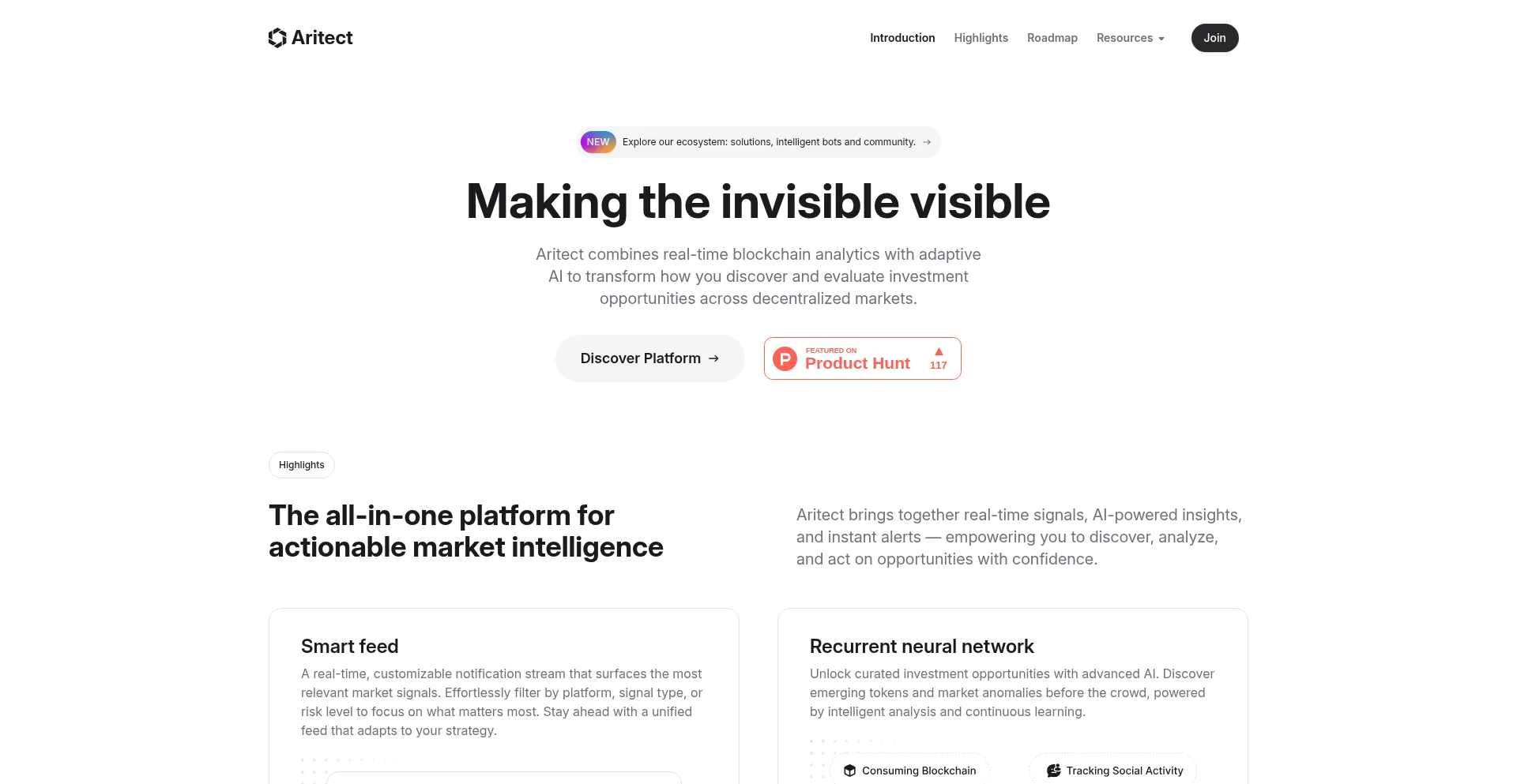 The aritect.com website is listed on Product Hunt, a platform for product discovery and community feedback.