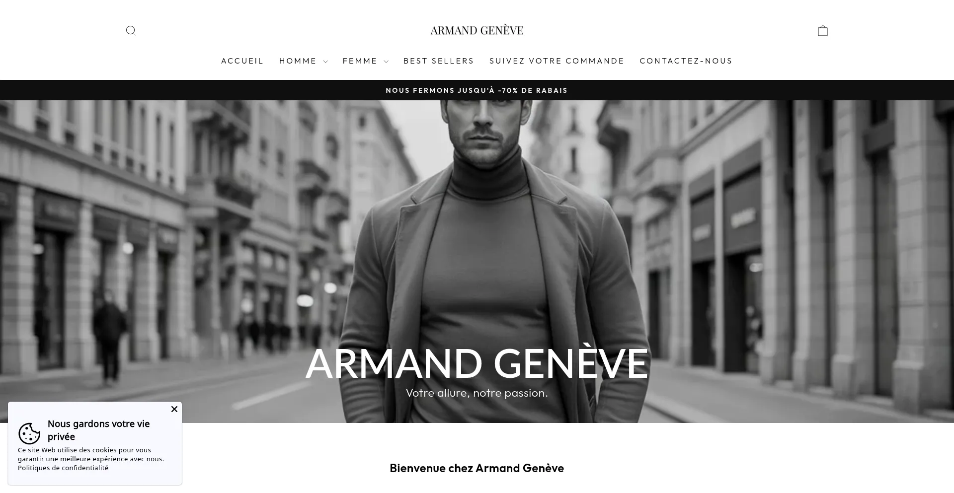 Analysis indicates that armand-geneve.ch operates as an e-commerce platform facilitating online transactions for goods or services. The website implements shopping cart functionality, payment processing systems, and product catalog features typical of commercial retail operations.