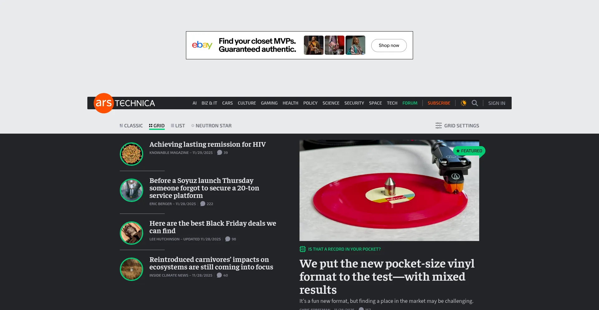 News and reviews, covering IT, AI, science, space, health, gaming, cybersecurity, tech policy, computers, mobile devices, and operating systems.