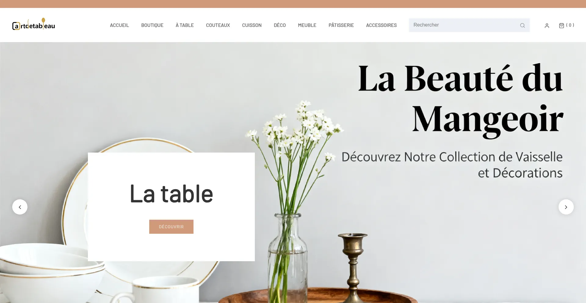 Découvrez Art de Tableau : Couteaux, Cuisson, Déco, Meubles et Pâtisserie pour sublimer votre table et cuisine avec des produits de qualité.