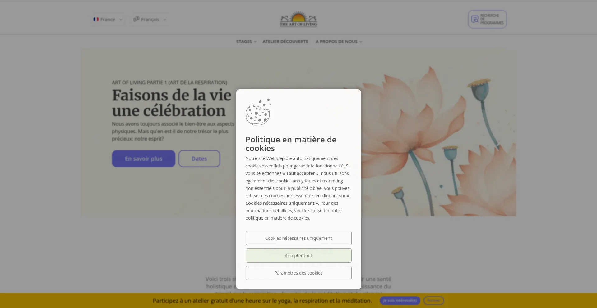 The website implements cookie consent mechanisms in compliance with privacy regulations such as GDPR or CCPA. This demonstrates that artdevivre.fr adheres to data protection standards and provides users with control over personal data collection practices.