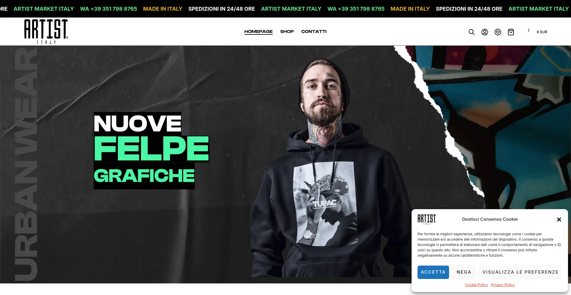 Analysis indicates that artist-shop.it operates as an e-commerce platform facilitating online transactions for goods or services. The website implements shopping cart functionality, payment processing systems, and product catalog features typical of commercial retail operations.