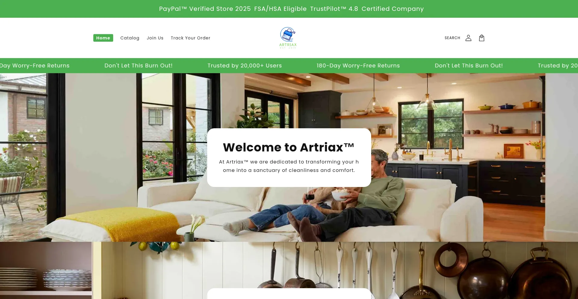 Analysis indicates that artriax.shop operates as an e-commerce platform facilitating online transactions for goods or services. The website implements shopping cart functionality, payment processing systems, and product catalog features typical of commercial retail operations.