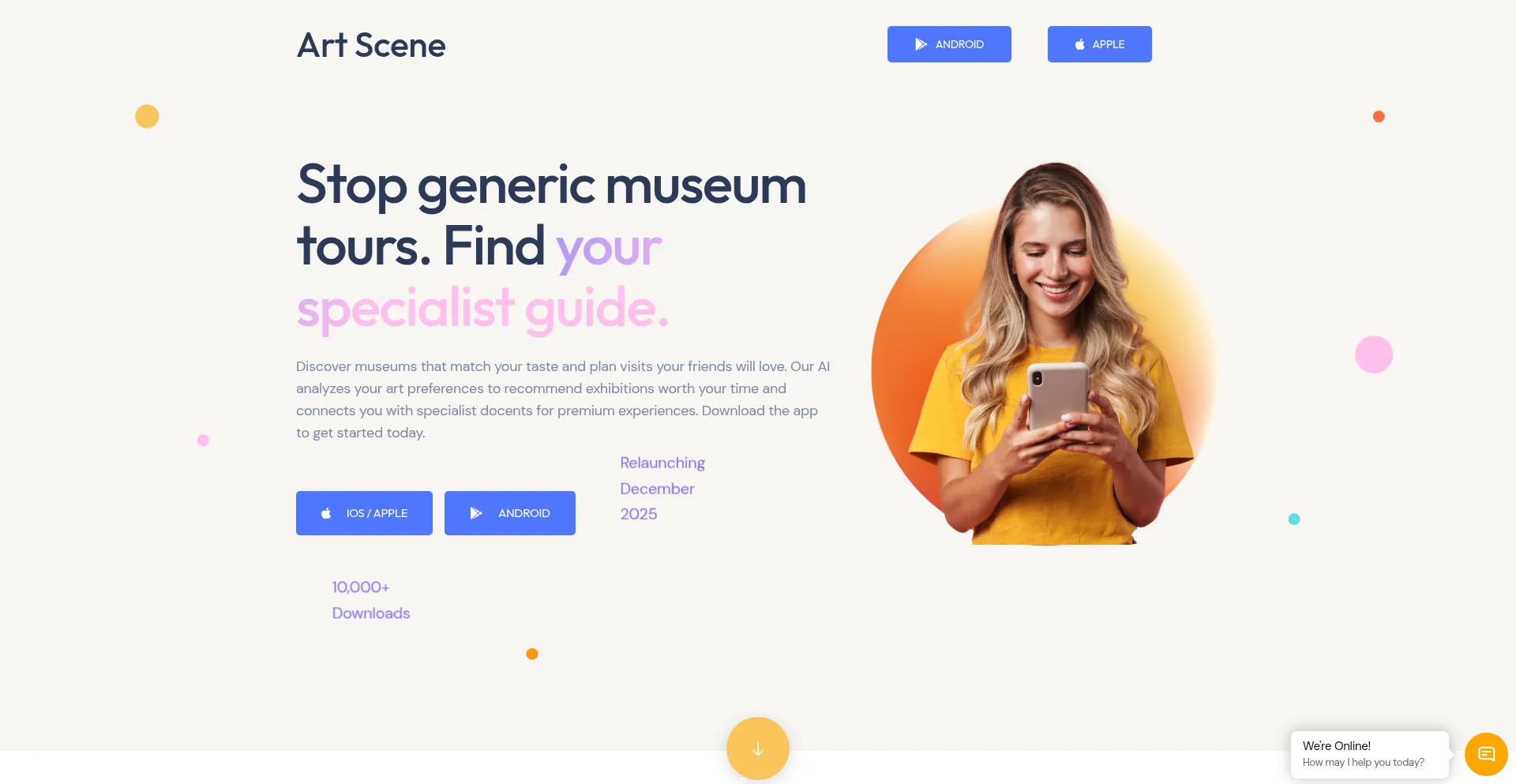 The artsceneapp.com website offers a mobile application for Android devices, indicating expanded platform presence beyond web-based services.
