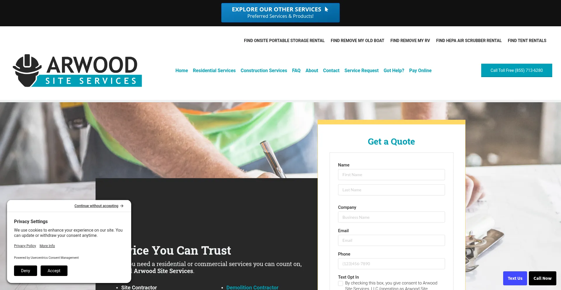 HTML analysis indicates that arwoodsiteservices.com website provides extended data, including information about the company or its products and services. This may suggest a commitment to transparency.