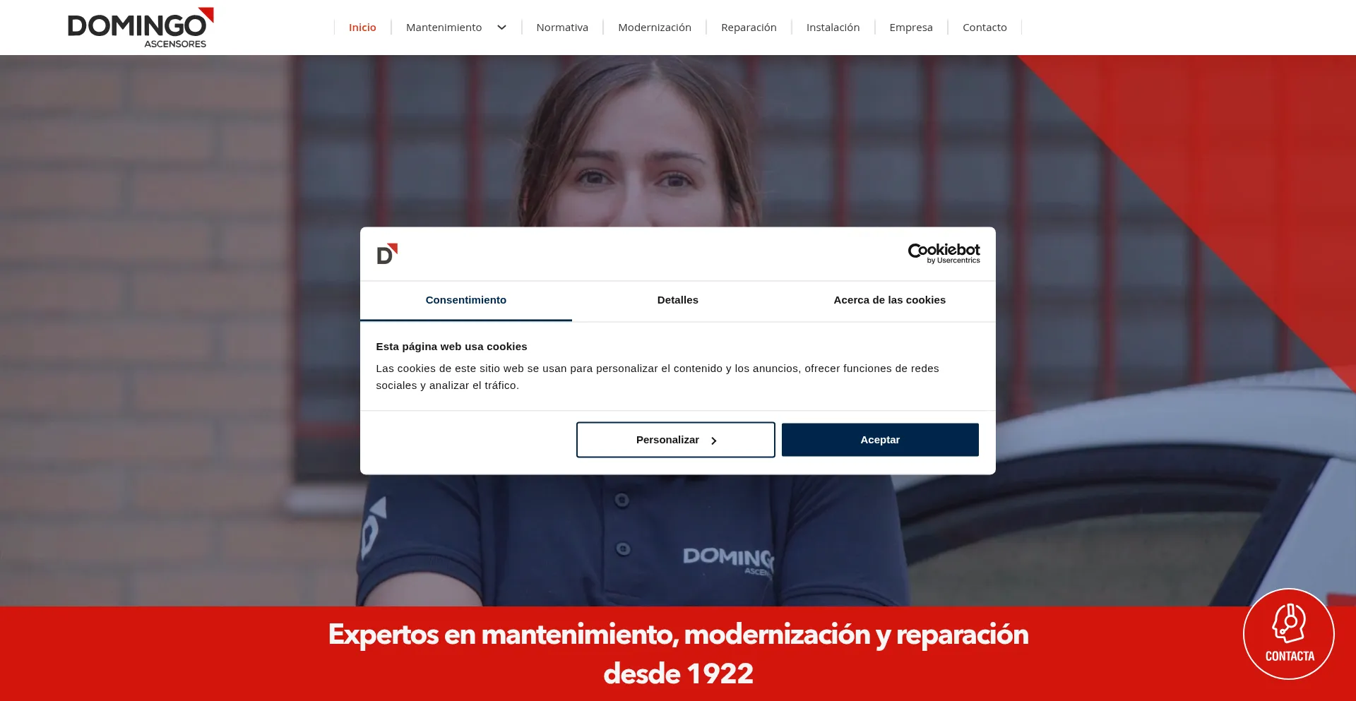 The website implements cookie consent mechanisms in compliance with privacy regulations such as GDPR or CCPA. This demonstrates that ascensoresdomingo.com adheres to data protection standards and provides users with control over personal data collection practices.