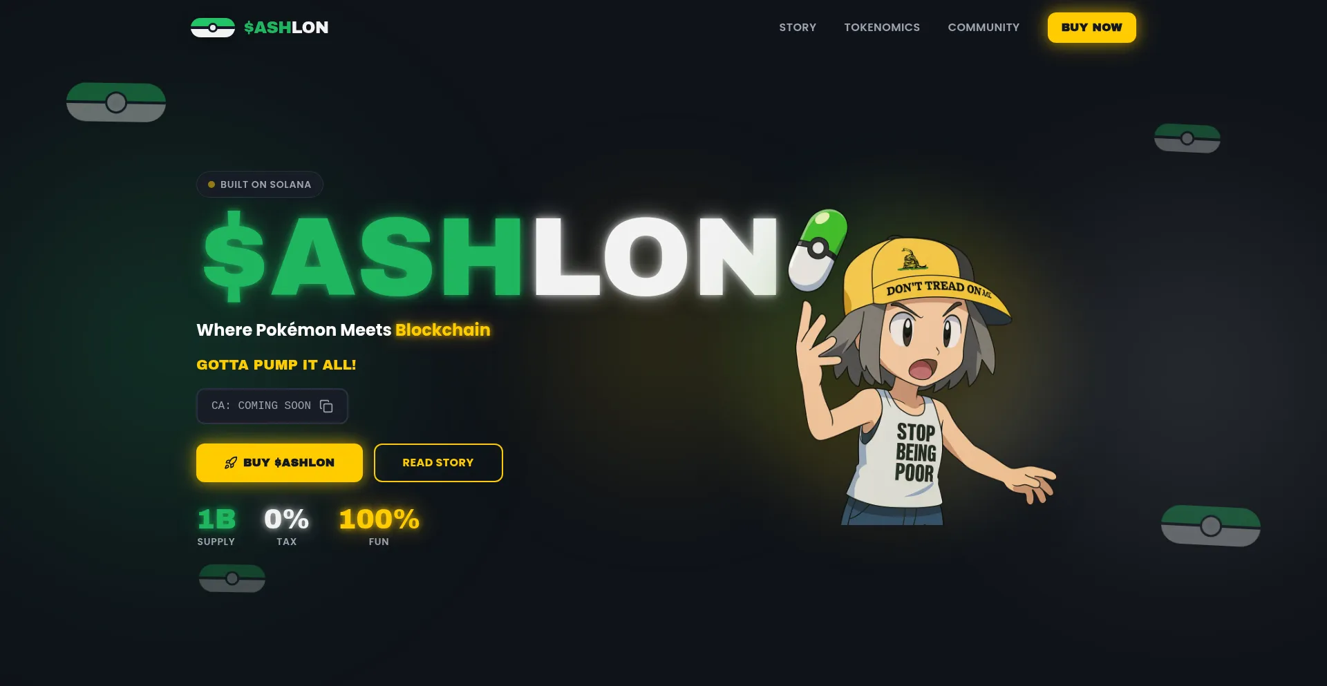 Where Pokémon meets blockchain chaos. $ASHLON is the memecoin that evolves when the market is bullish. Join the degen community on Solana.