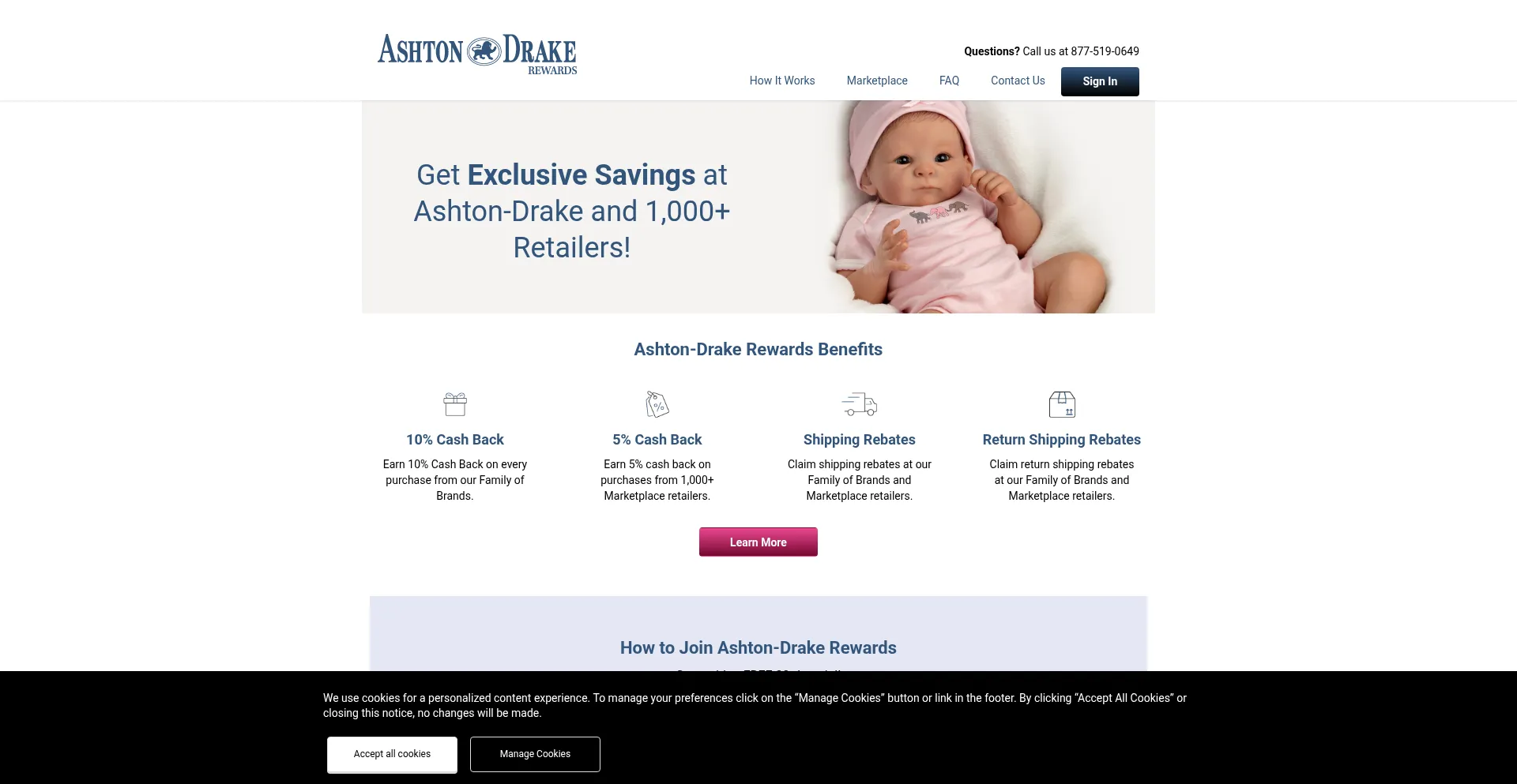 The website implements cookie consent mechanisms in compliance with privacy regulations such as GDPR or CCPA. This demonstrates that ashtondrakerewards.com adheres to data protection standards and provides users with control over personal data collection practices.