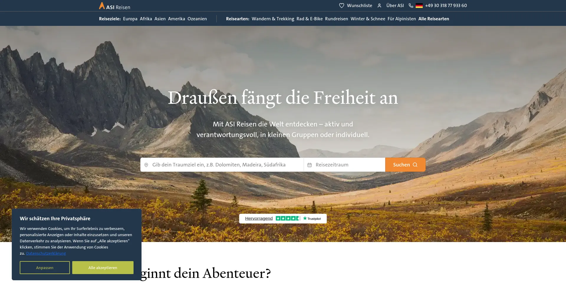 Entdecke über 5.000 nachhaltige Aktiv- & Erlebnisreisen weltweit. Seit 1963 von Experten in kleinen Gruppen geführt oder individuell geplant. Buche jetzt dein Abenteuer!