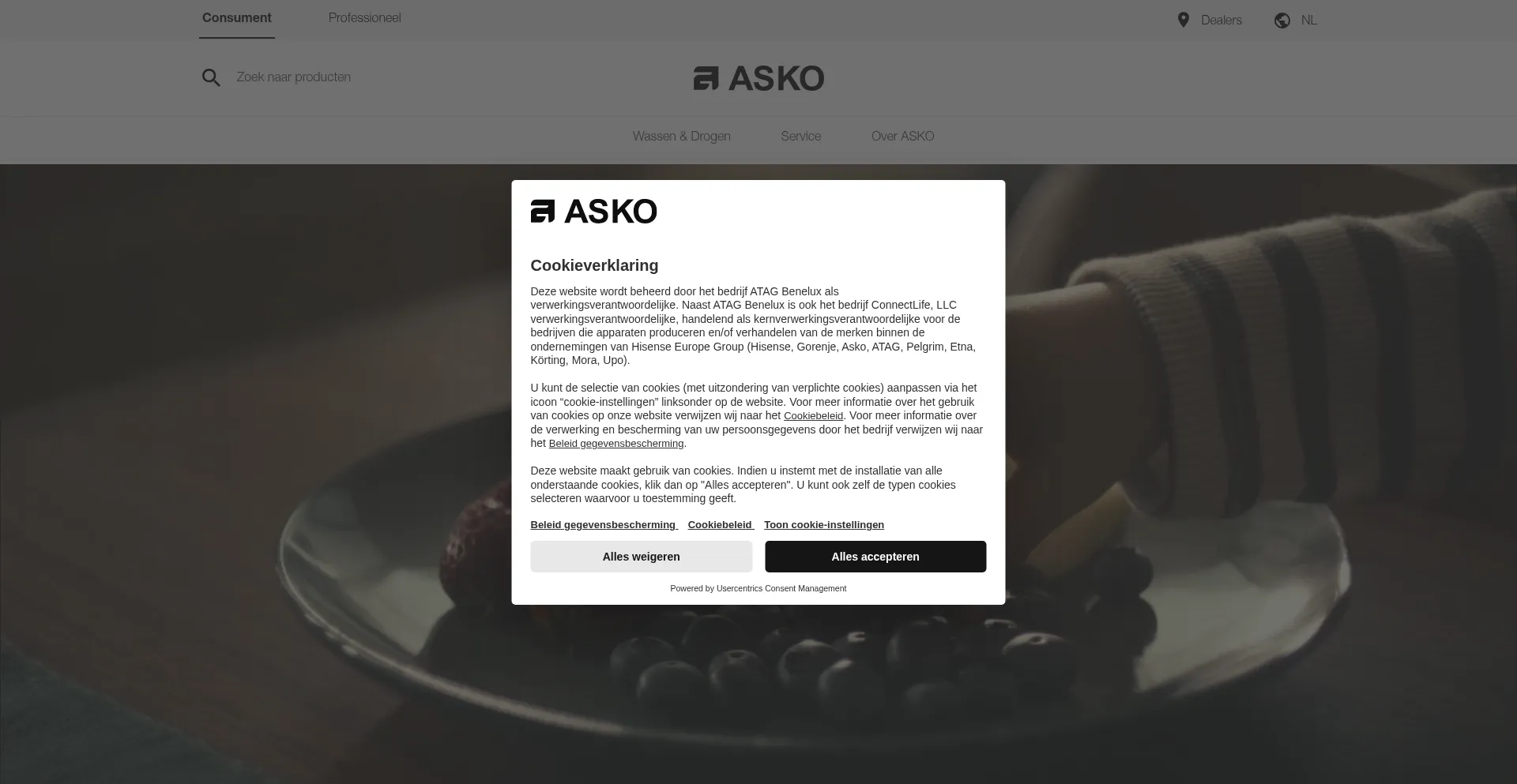 The website implements cookie consent mechanisms in compliance with privacy regulations such as GDPR or CCPA. This demonstrates that asko.nl adheres to data protection standards and provides users with control over personal data collection practices.