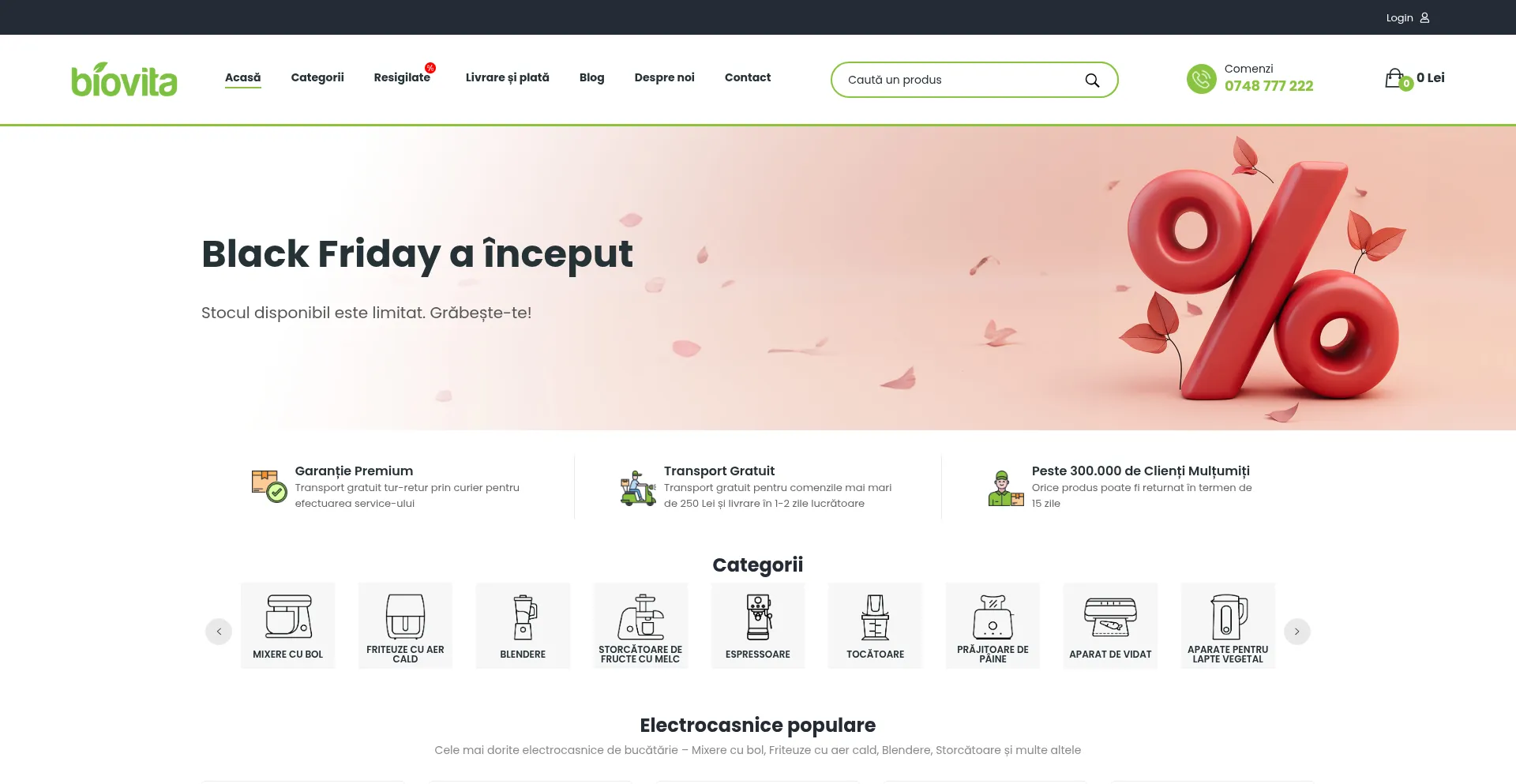 Biovita vă oferă aparatură care vă ajută să aveți un stil de viață mai sănătos: storcătoare, mori de cereale, aparate pentru lapte vegetal, iaurtiere, deshidratoare,...