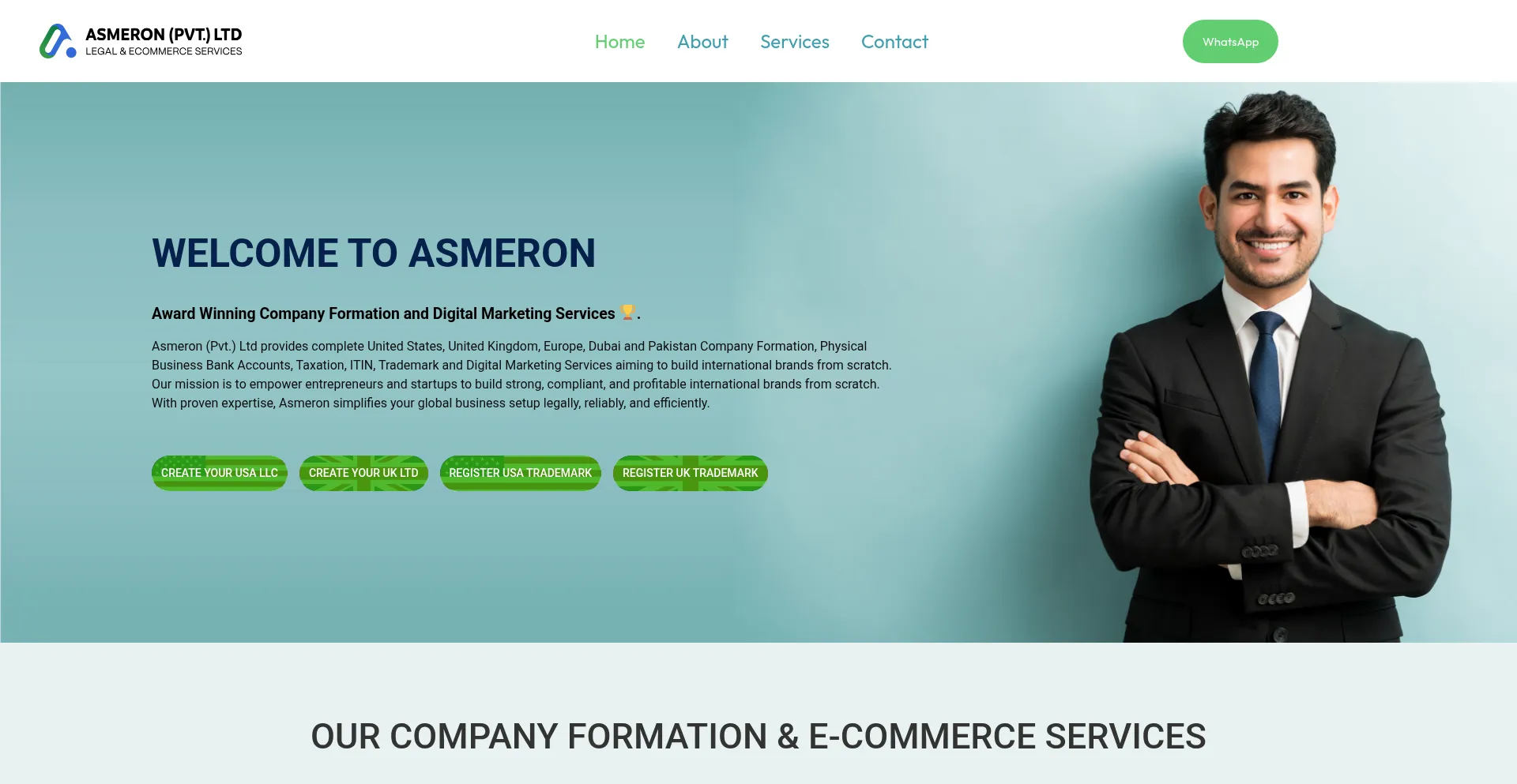 Asmeron (Pvt.) Ltd provides complete United States, United Kingdom, Europe, Dubai and Pakistan Company Formation, Physical Business Bank Accounts, Taxation, ITIN, Trademark and ...