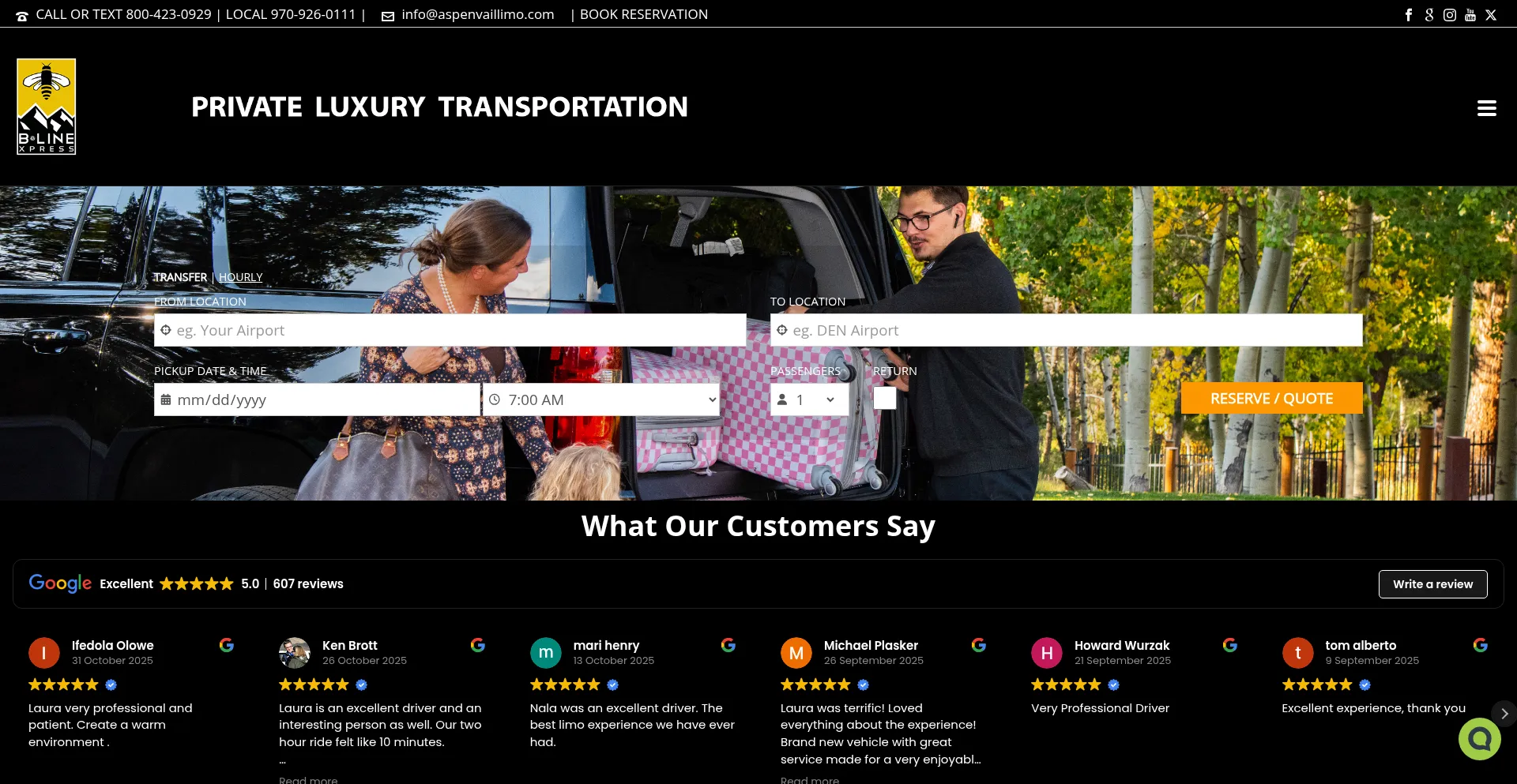 Vail Limo. B-LineXpress (800) 423-0929 Vail CO. Vail & Beaver Creek Limousine Transportation. Private Car Service & Limo Denver to Vail.