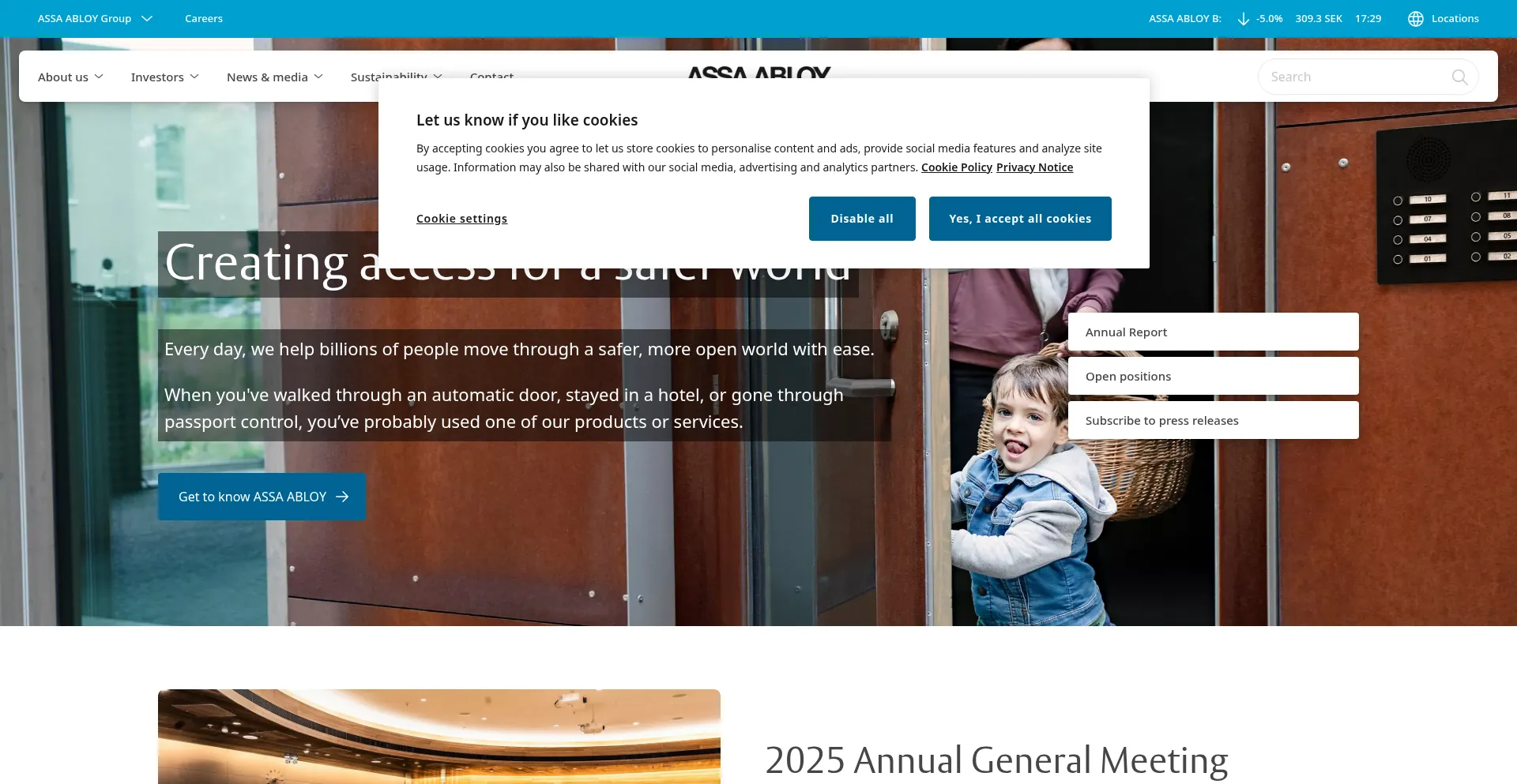 The website implements cookie consent mechanisms in compliance with privacy regulations such as GDPR or CCPA. This demonstrates that assaabloy.com adheres to data protection standards and provides users with control over personal data collection practices.