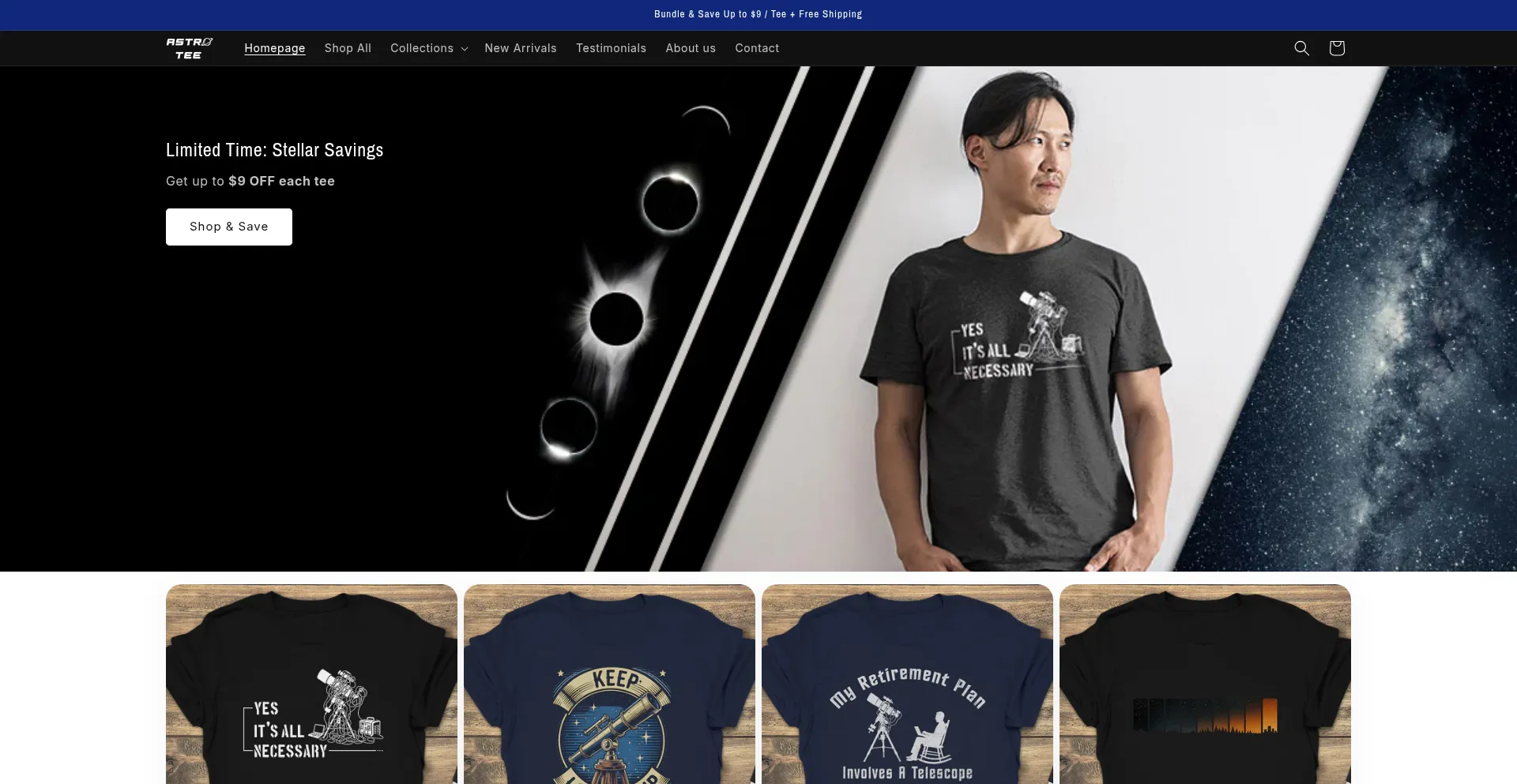 The astrotee.shop website utilizes free e-commerce platform solutions, which may indicate cost-conscious operations but could also suggest limitations in security features, customer support, or advanced functionality compared to enterprise-grade solutions.