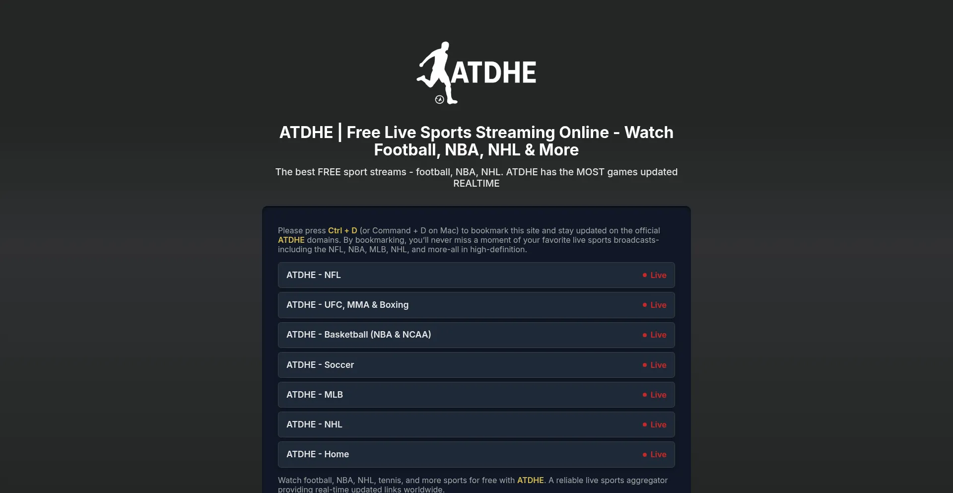 Watch free live sports streams online with ATDHE. Access football, NBA, NHL, tennis, and more in real-time. ATDHE is the best choice for Live Sports Streams.