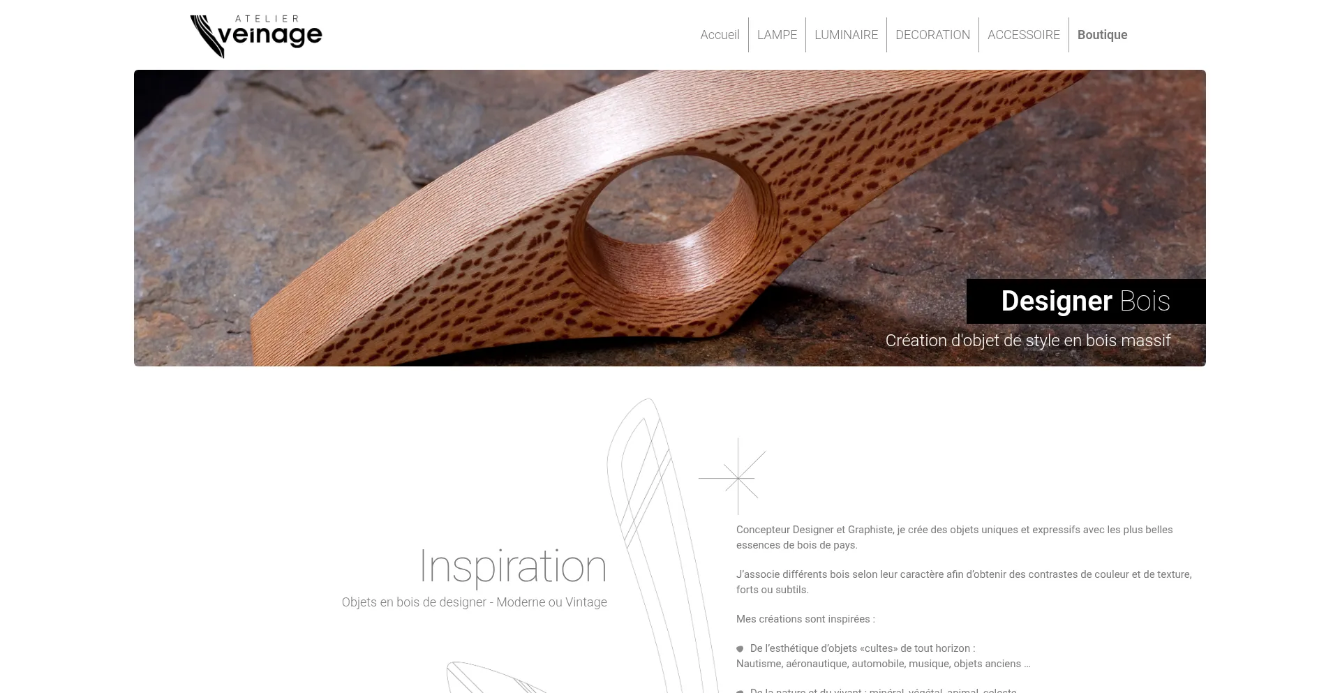 Atelier Veinage - Objets de DESIGNER en bois - Créateur de Lampes, luminaires, décoration - Style moderne ou vintage