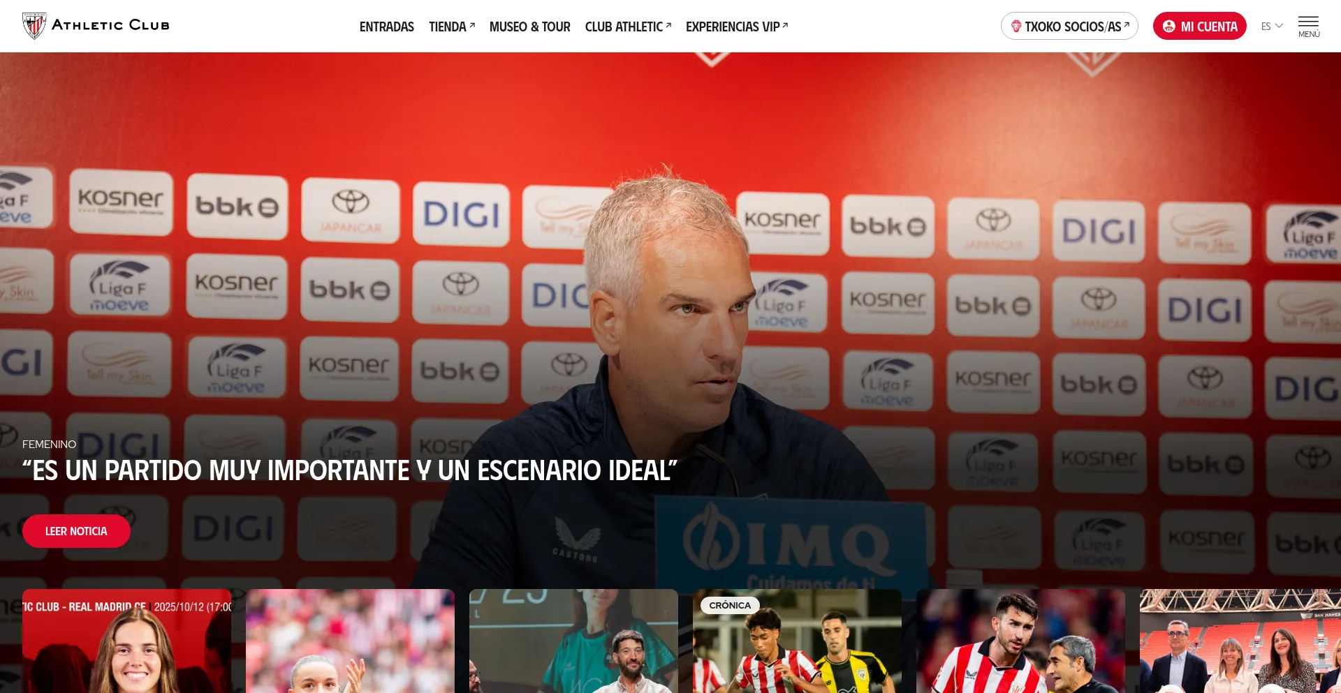 Website Oficial del Athletic Club · Últimas Noticias, Futbolistas, Entradas próximos partidos, Tickets Tour San Mamés y Museo, Tienda Oficial e información para Socios/as.