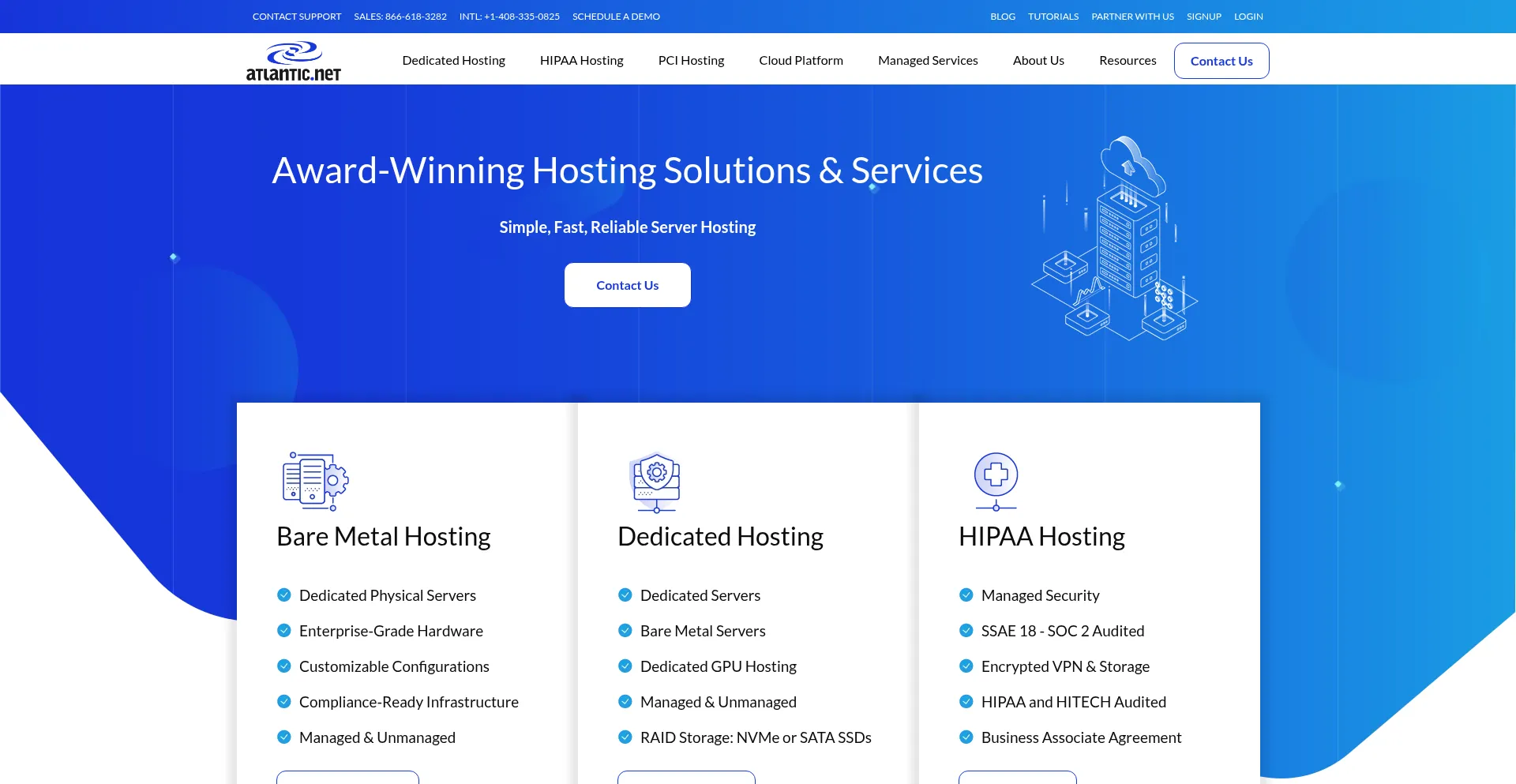 Atlantic.Net provides an array of hosting services, to include cloud, VPS, dedicated hosting, colocation, private virtualization, and managed hosting.