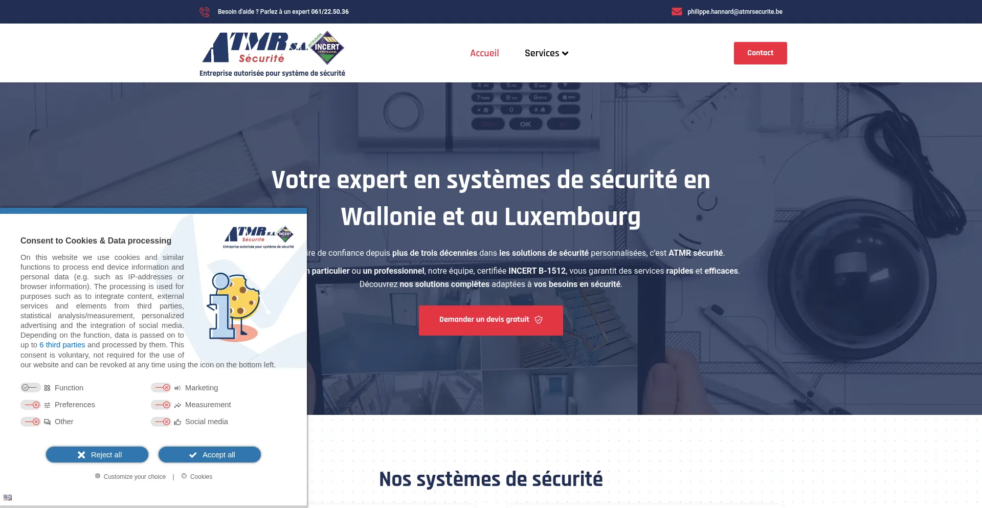 The website implements cookie consent mechanisms in compliance with privacy regulations such as GDPR or CCPA. This demonstrates that atmrsecurite.be adheres to data protection standards and provides users with control over personal data collection practices.