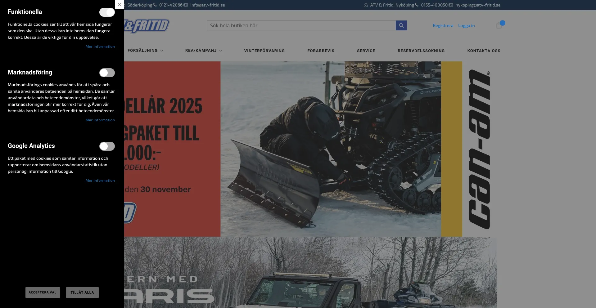 Analysis indicates that atv-fritid.se operates as an e-commerce platform facilitating online transactions for goods or services. The website implements shopping cart functionality, payment processing systems, and product catalog features typical of commercial retail operations.