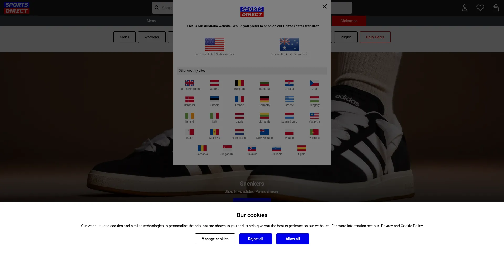 The website implements cookie consent mechanisms in compliance with privacy regulations such as GDPR or CCPA. This demonstrates that au.sportsdirect.com adheres to data protection standards and provides users with control over personal data collection practices.