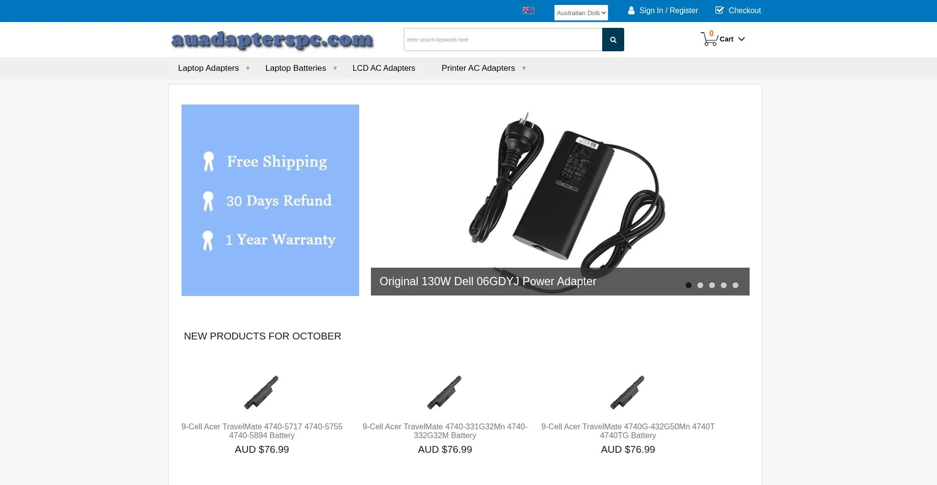 Laptop AC Adapters and Laptop Batteries from auadapterspc.com. We supply notebook parts at a great price with 1 Year Warranty.