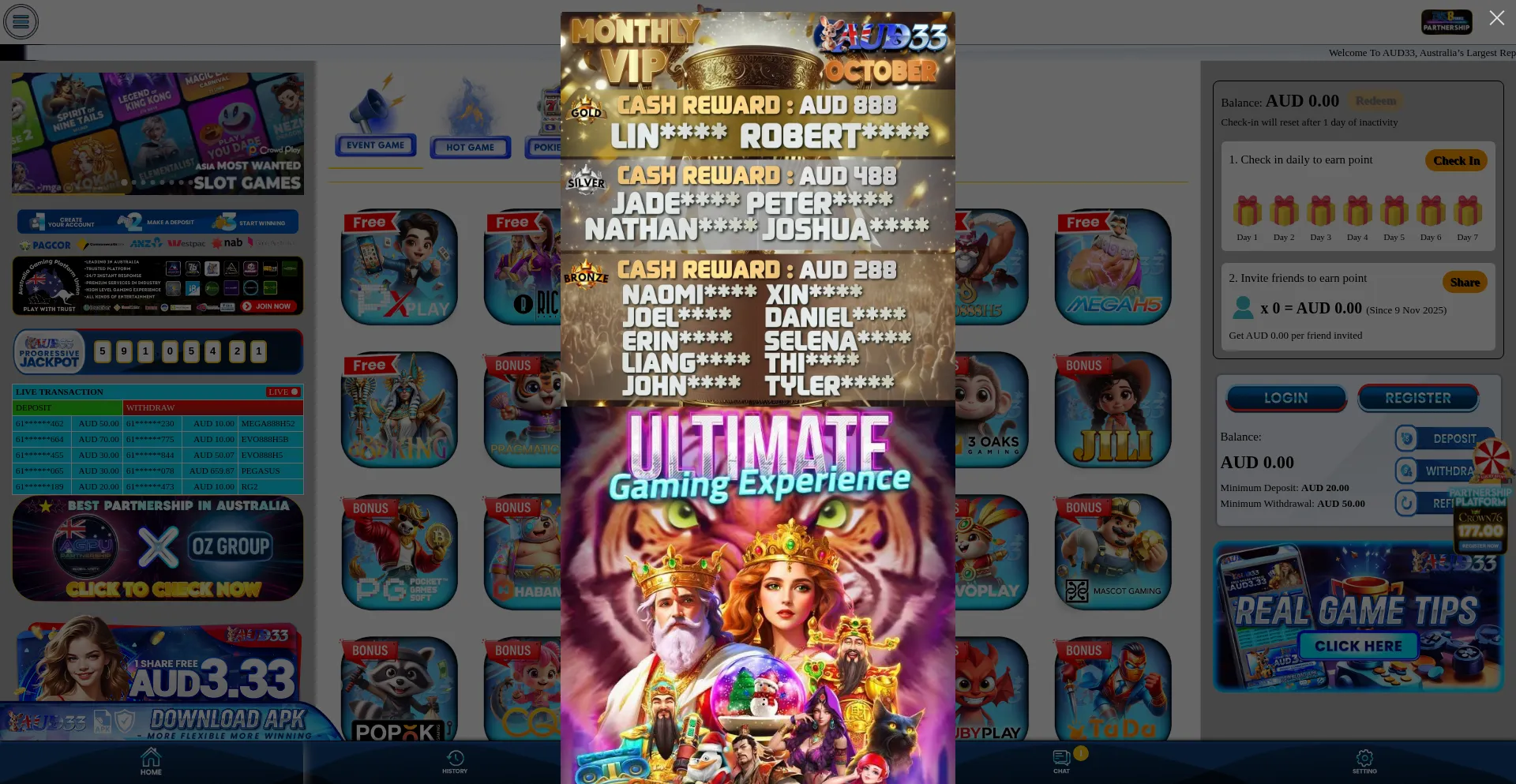 AUD33 | AU Biggest Online Pokies | Pokies Game | Live Casino | SportBook | Ozlotto & Poker