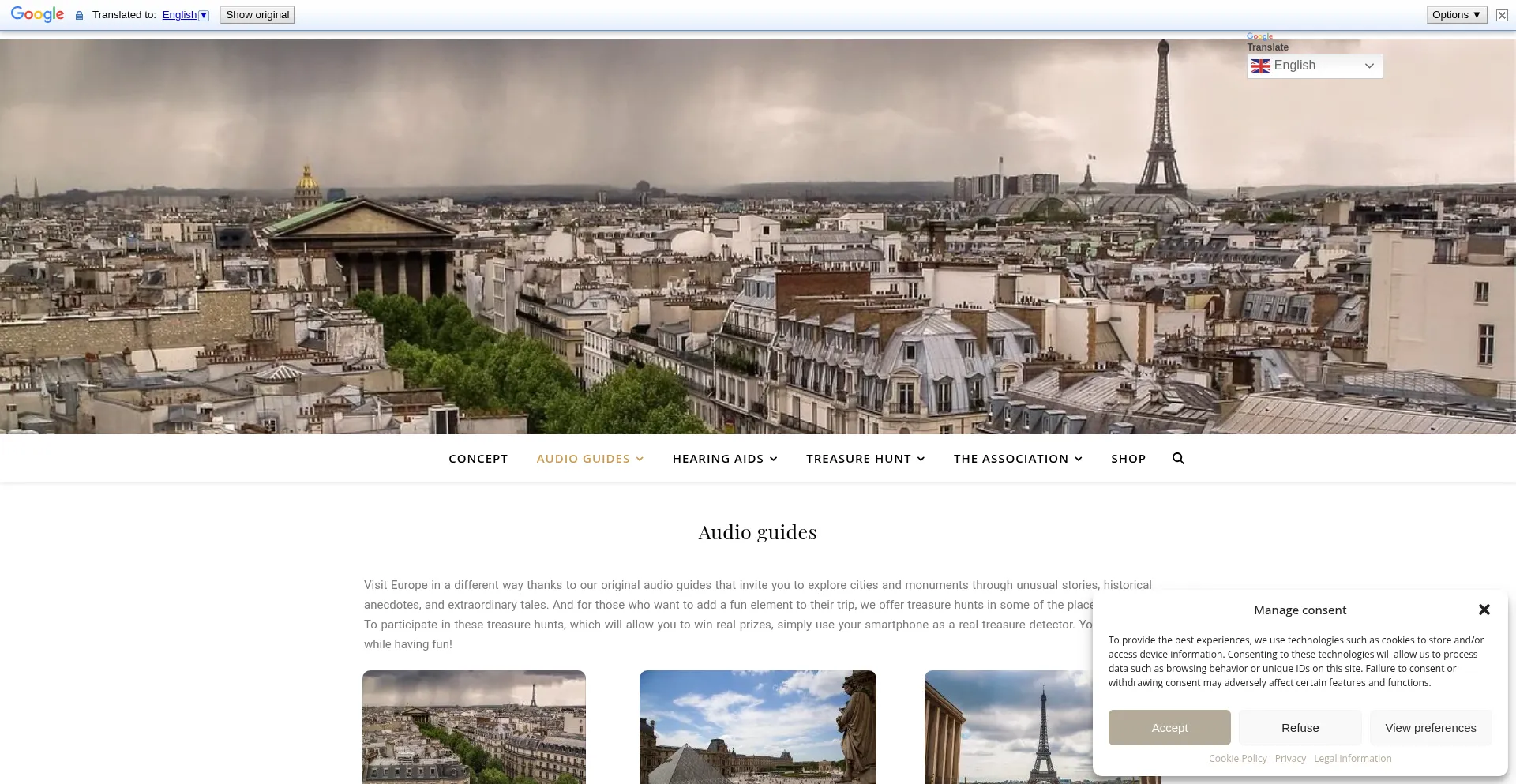 The website implements cookie consent mechanisms in compliance with privacy regulations such as GDPR or CCPA. This demonstrates that audio-guides.eu adheres to data protection standards and provides users with control over personal data collection practices.