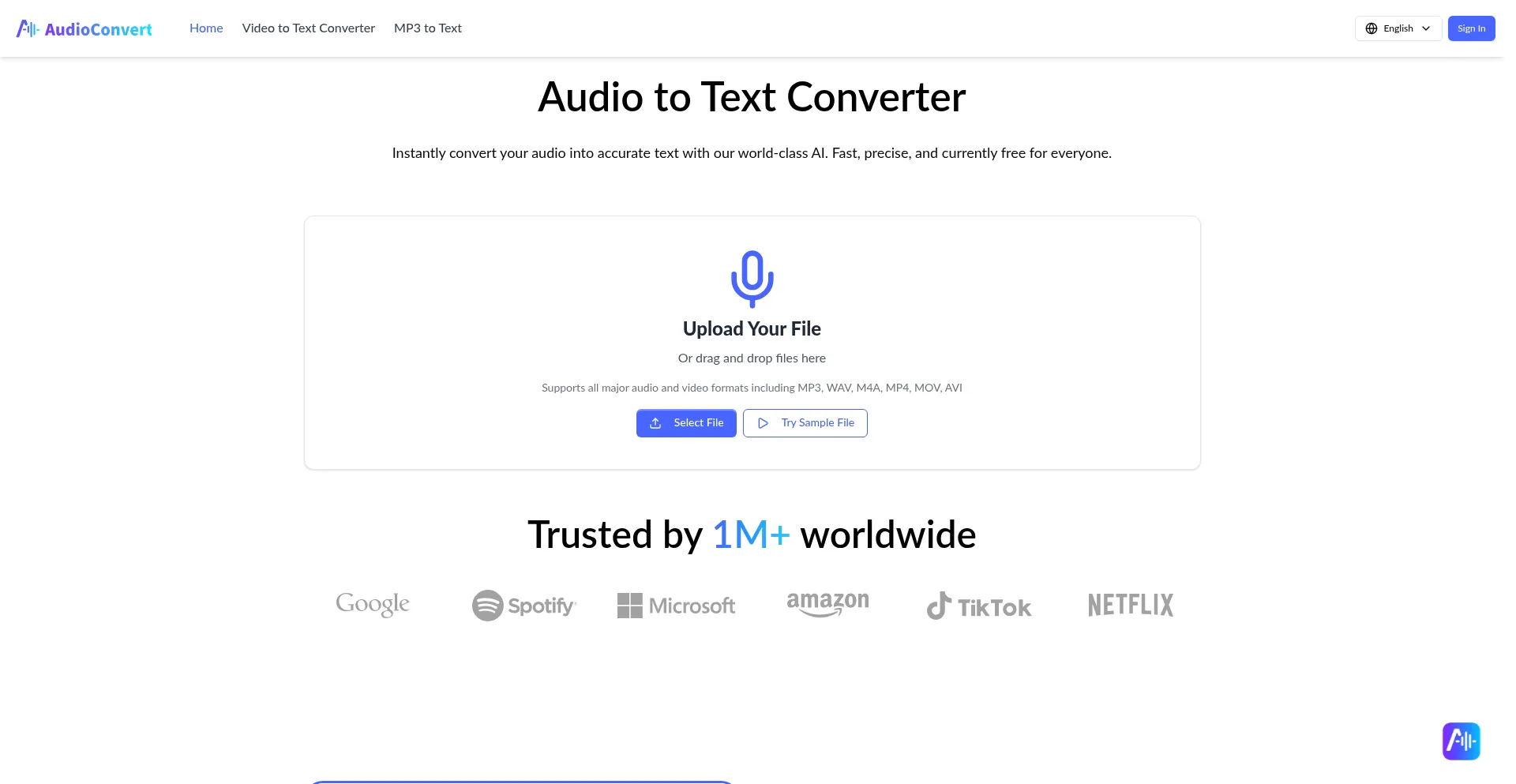 Convert audio to accurate text in minutes. AI transcription with speaker detection, timestamps, and TXT/DOCX/SRT exports.