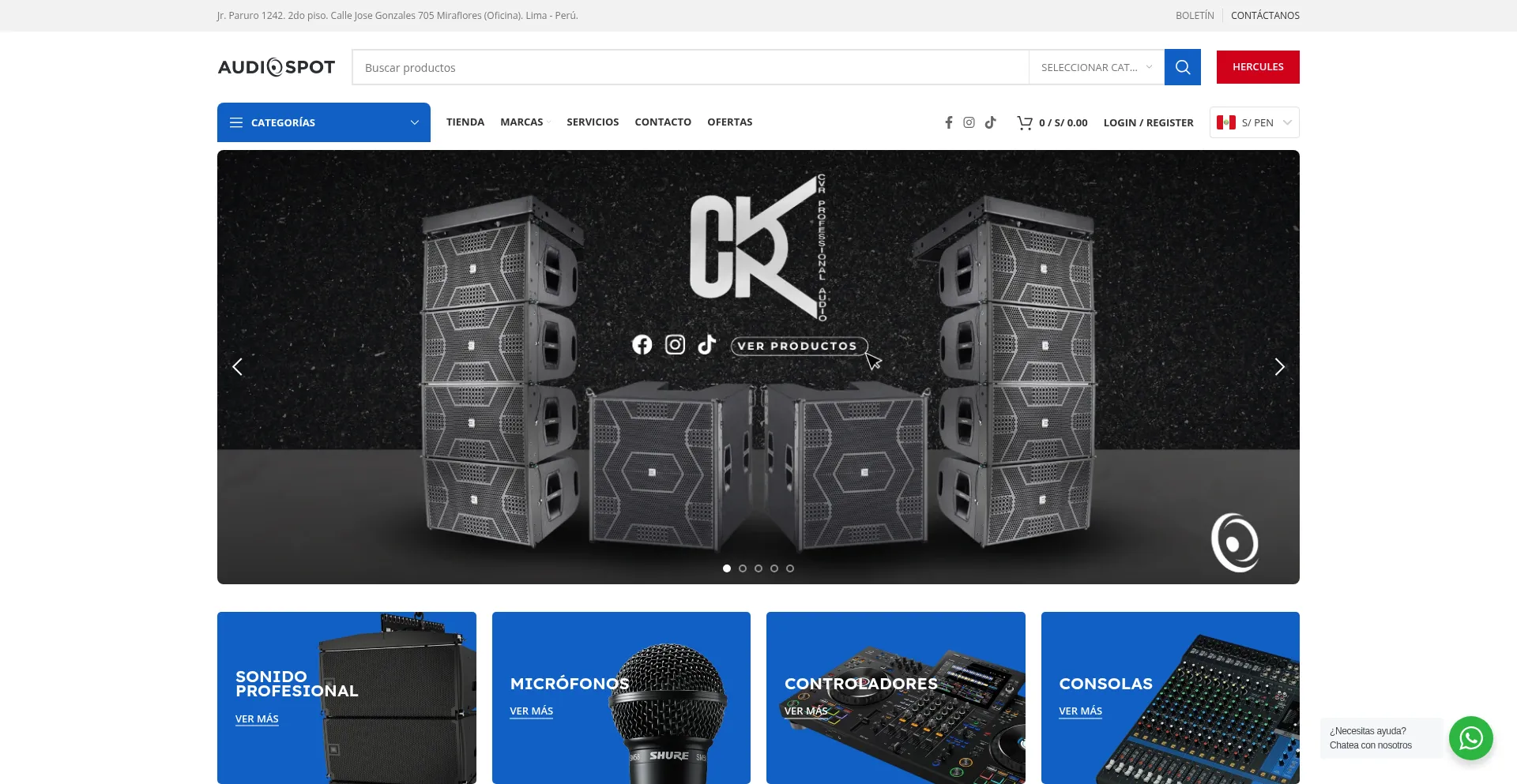 Somos AudioSpot tu tienda de audio profesional, instrumentos musicales, iluminación y accesorios. Ofrecemos envíos a todo el Perú.