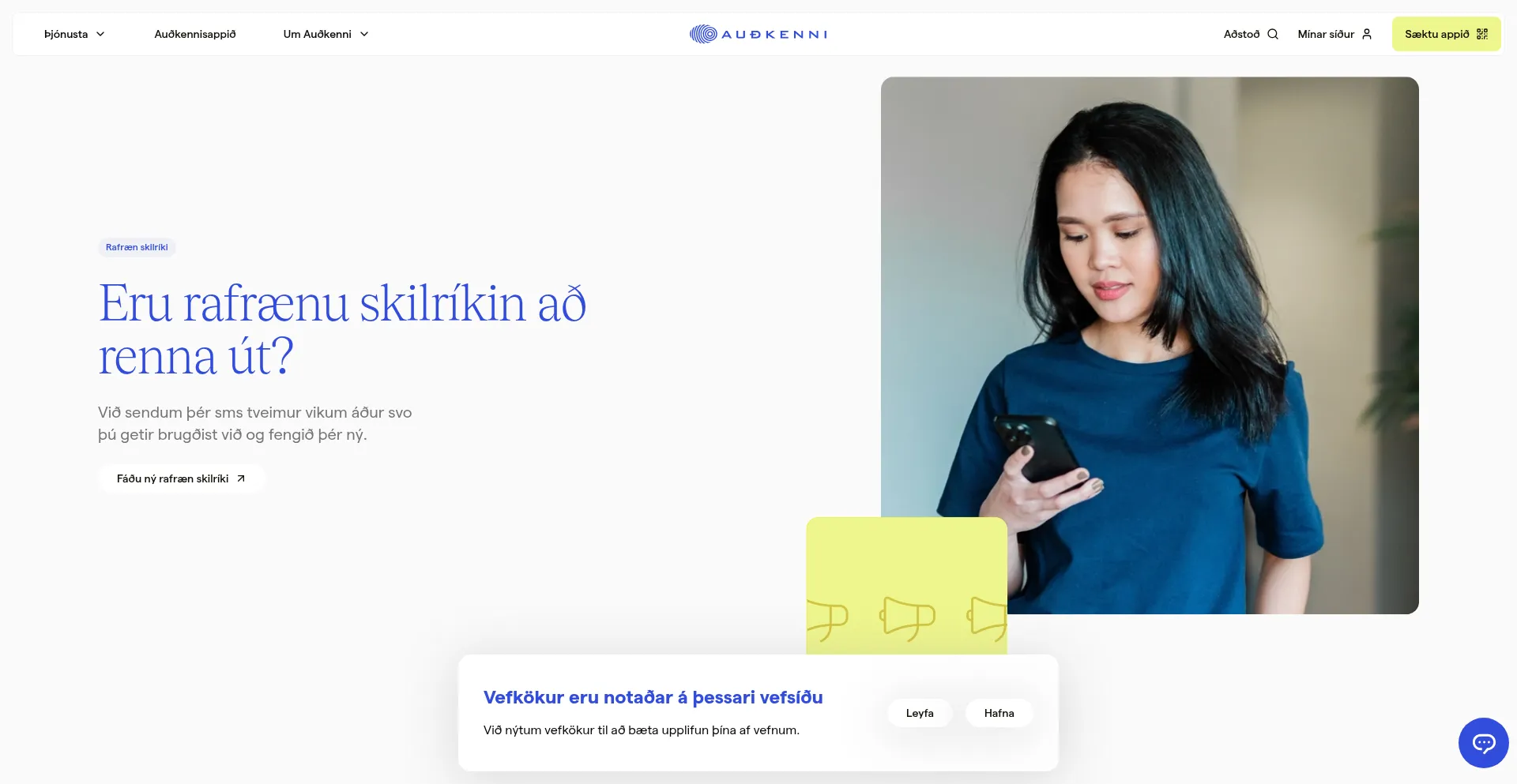 apps.apple.com mitt.audkenni.is www.cookiehub.com www.linkedin.com maps.app.goo.gl play.google.com audkenni.is www.google-analytics.com api.talkdeskapp.com wyv31614.live.dynatrace.com +7 more