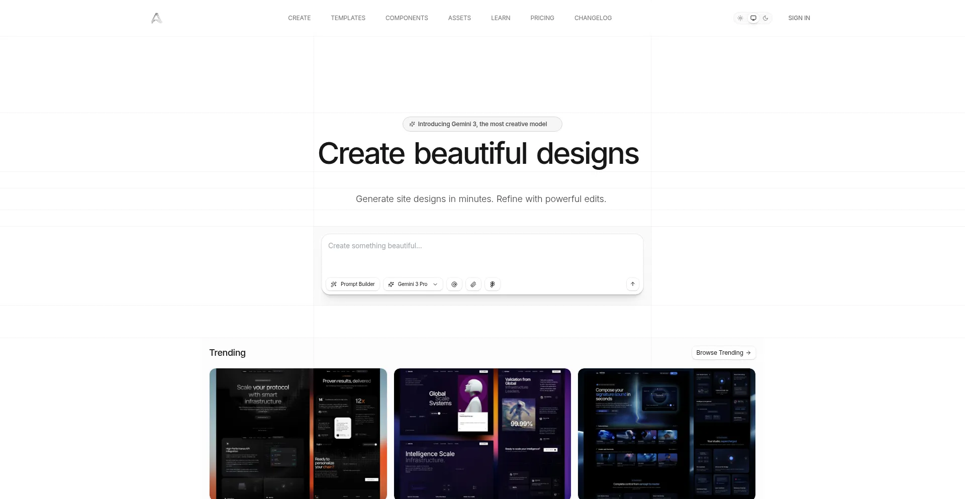 Generate beautiful designs in seconds using AI. Create web designs, mobile UI, animations and export to HTML or Figma.