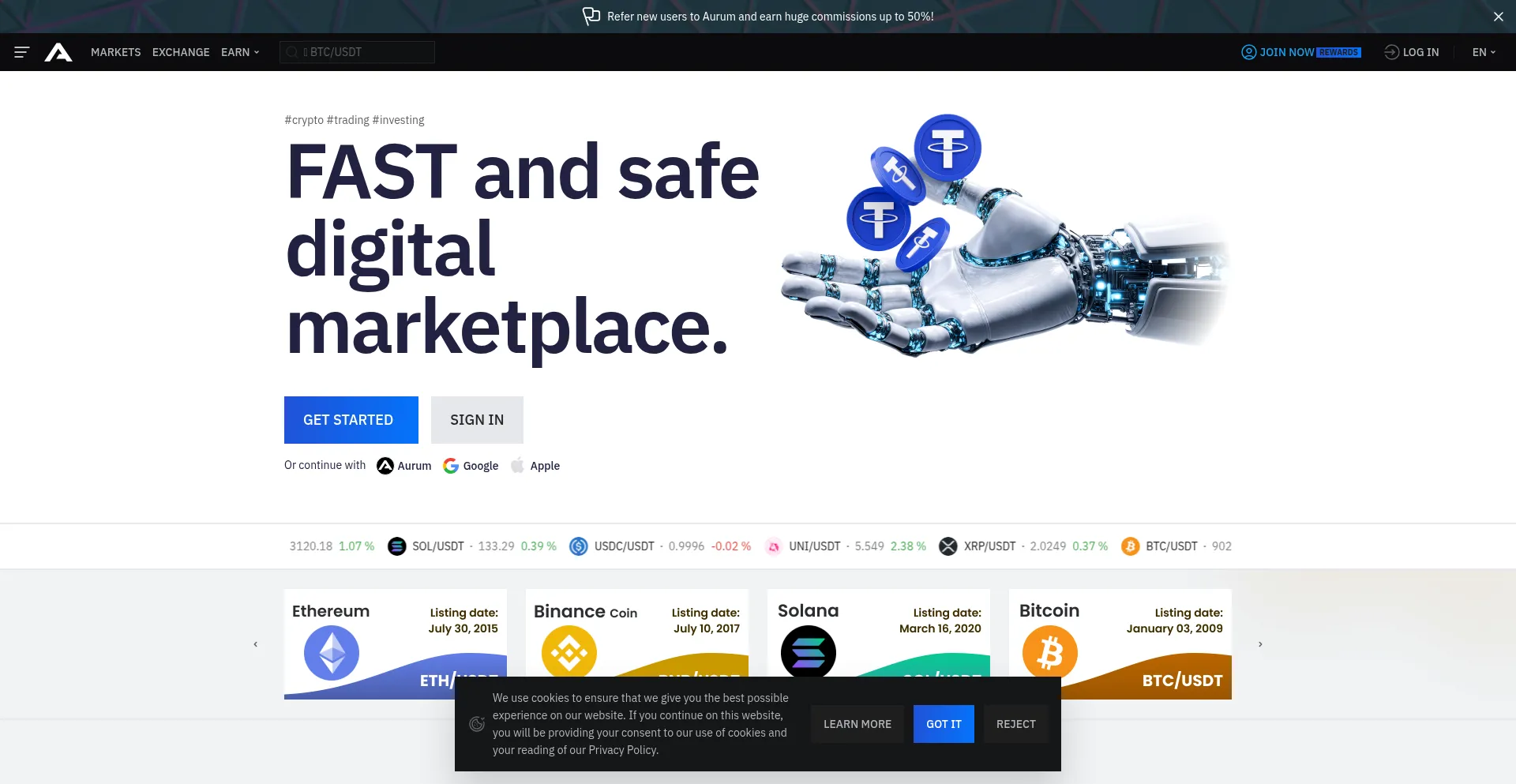 The website implements cookie consent mechanisms in compliance with privacy regulations such as GDPR or CCPA. This demonstrates that aurum.trading adheres to data protection standards and provides users with control over personal data collection practices.