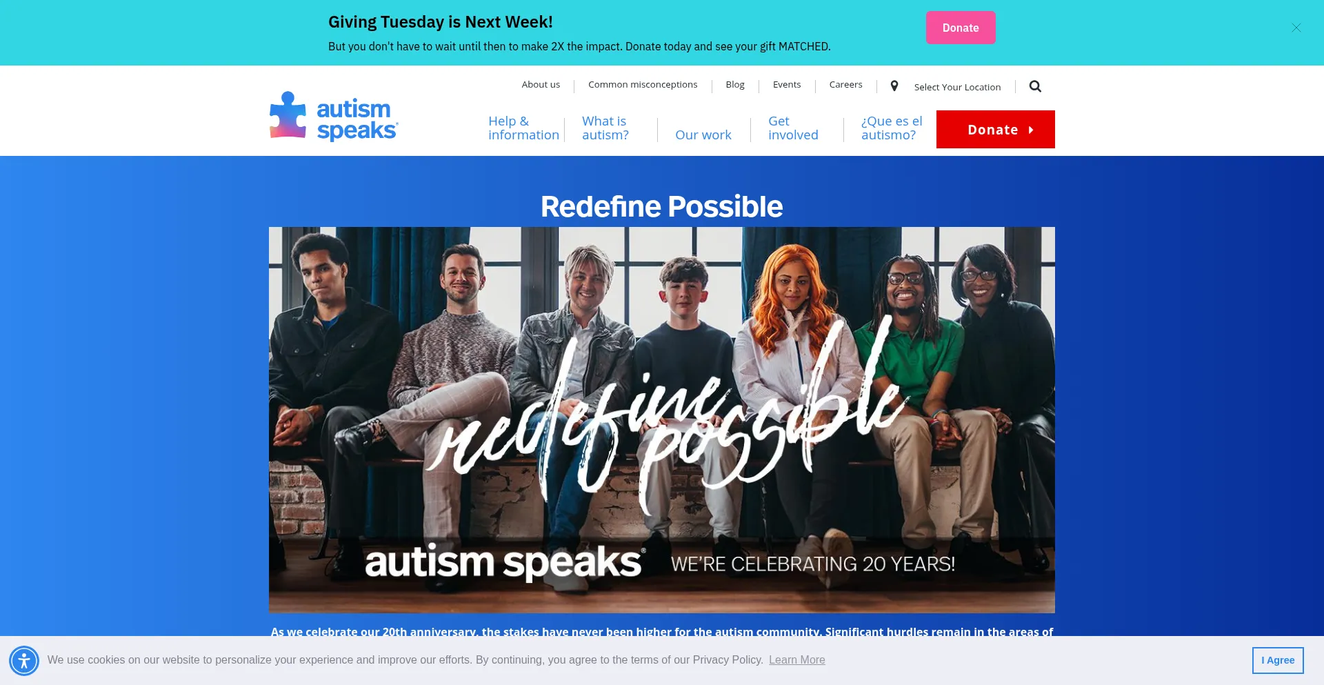 The website implements cookie consent mechanisms in compliance with privacy regulations such as GDPR or CCPA. This demonstrates that autismspeaks.org adheres to data protection standards and provides users with control over personal data collection practices.