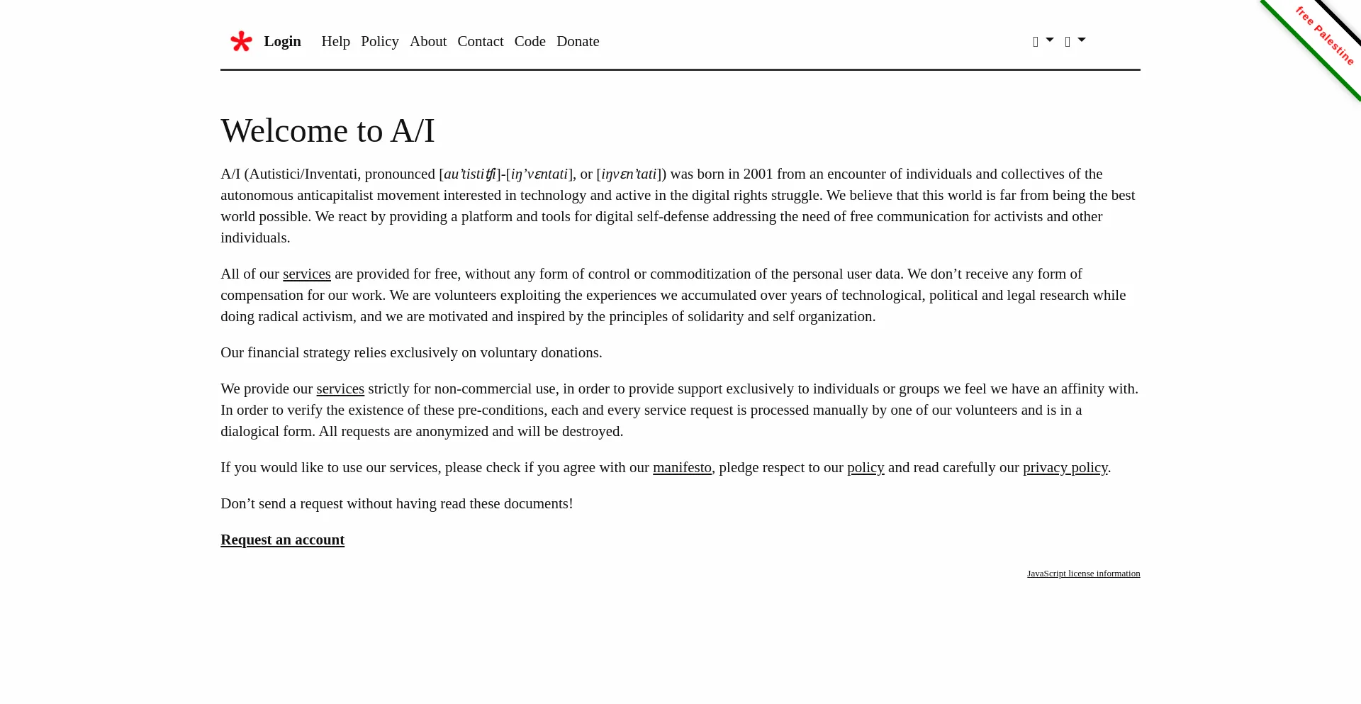 Autistici/Inventati provides internet support to activists and collectives coming from the world of grassroot and social movements
