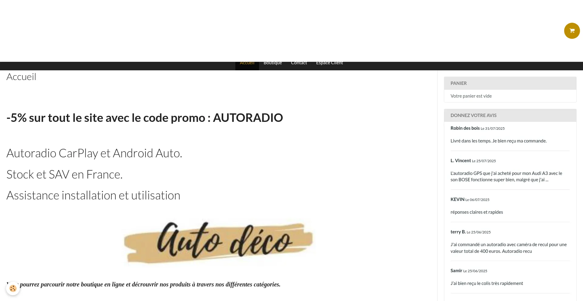 Analysis indicates that autodeco.fr operates as an e-commerce platform facilitating online transactions for goods or services. The website implements shopping cart functionality, payment processing systems, and product catalog features typical of commercial retail operations.