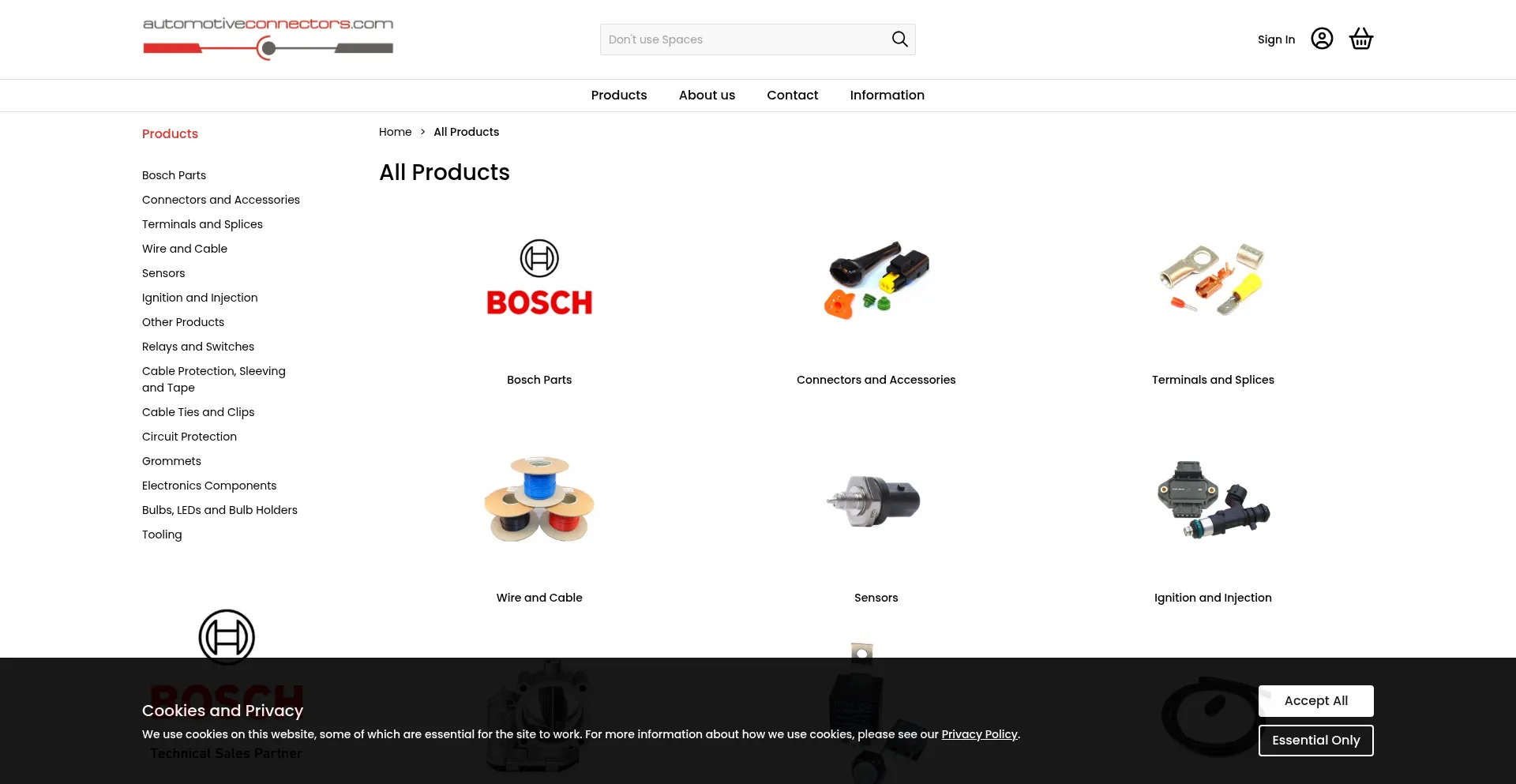 Stockists of a wide range of automotive electrical and wiring products. Connectors, terminals. Genuine Bosch connectors. Bosch distributor.